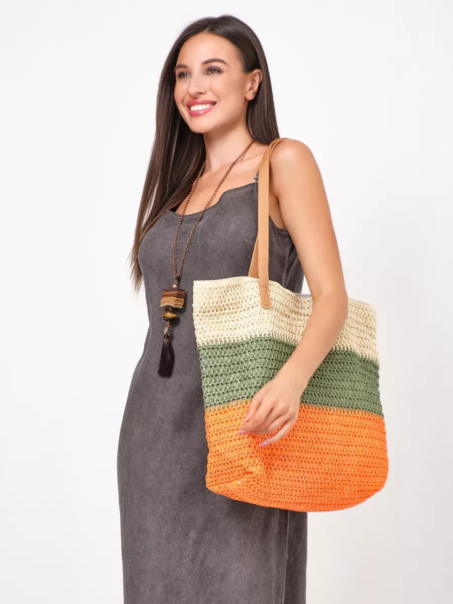 Con le sue righe beige, kaki e terracotta, si abbina naturalmente ai vostri outfit estivi. Questa shopper diventerà presto la vostra alleata irrinunciabile per la spiaggia, il mercato o le passeggiate in città.