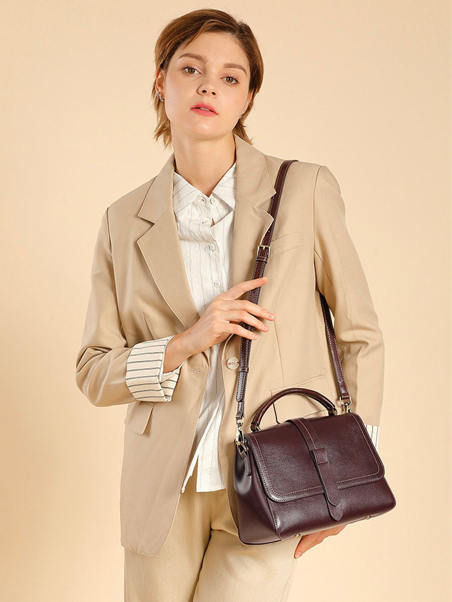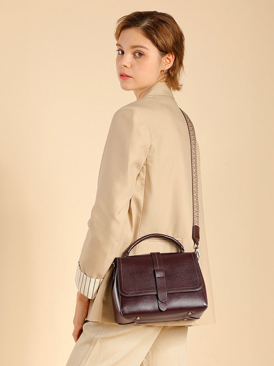 Borsa a mano da donna in pelle, tracolla amovibile, formato compatto, patta magnetica, design vintage, modello Junissa