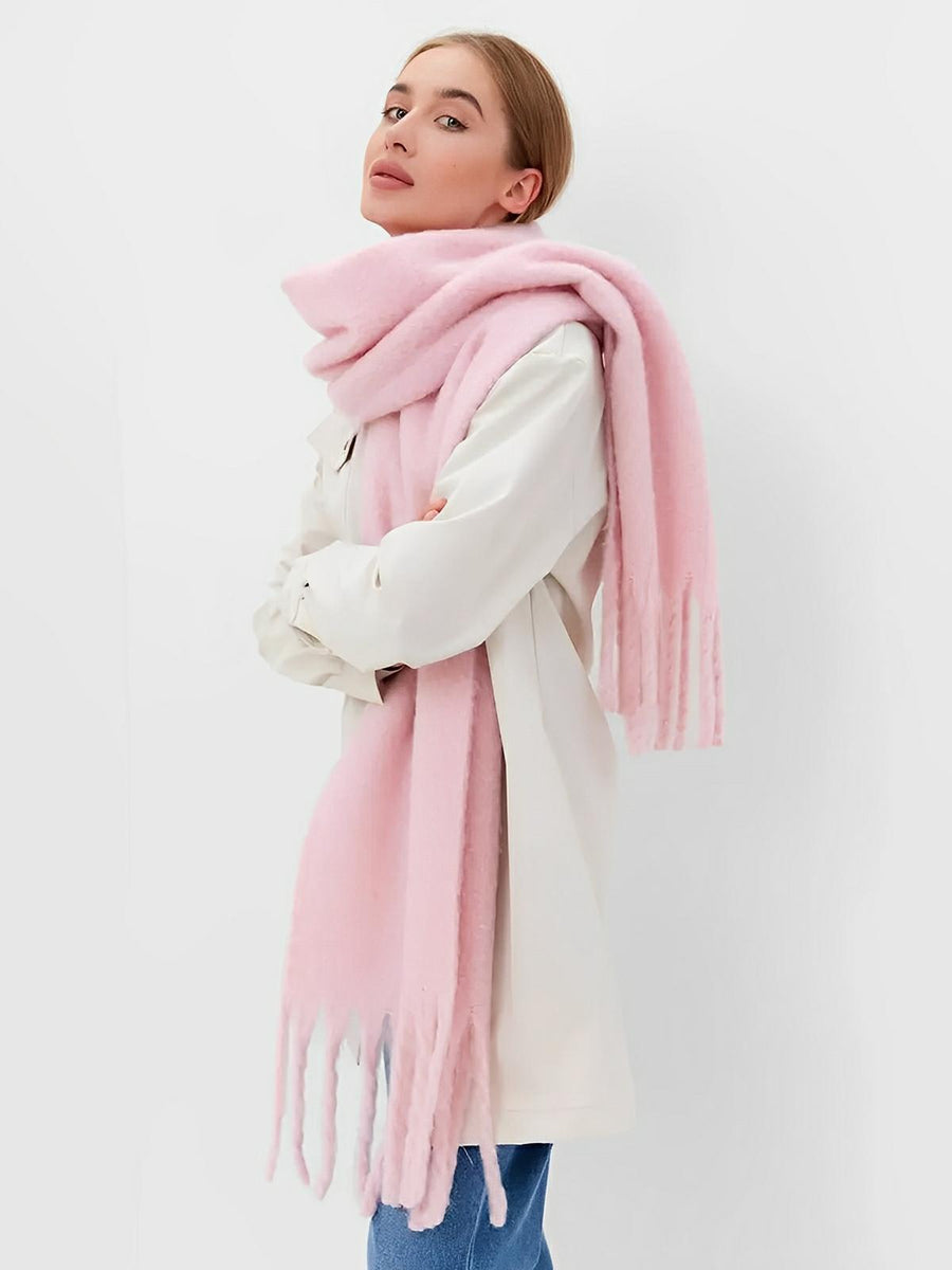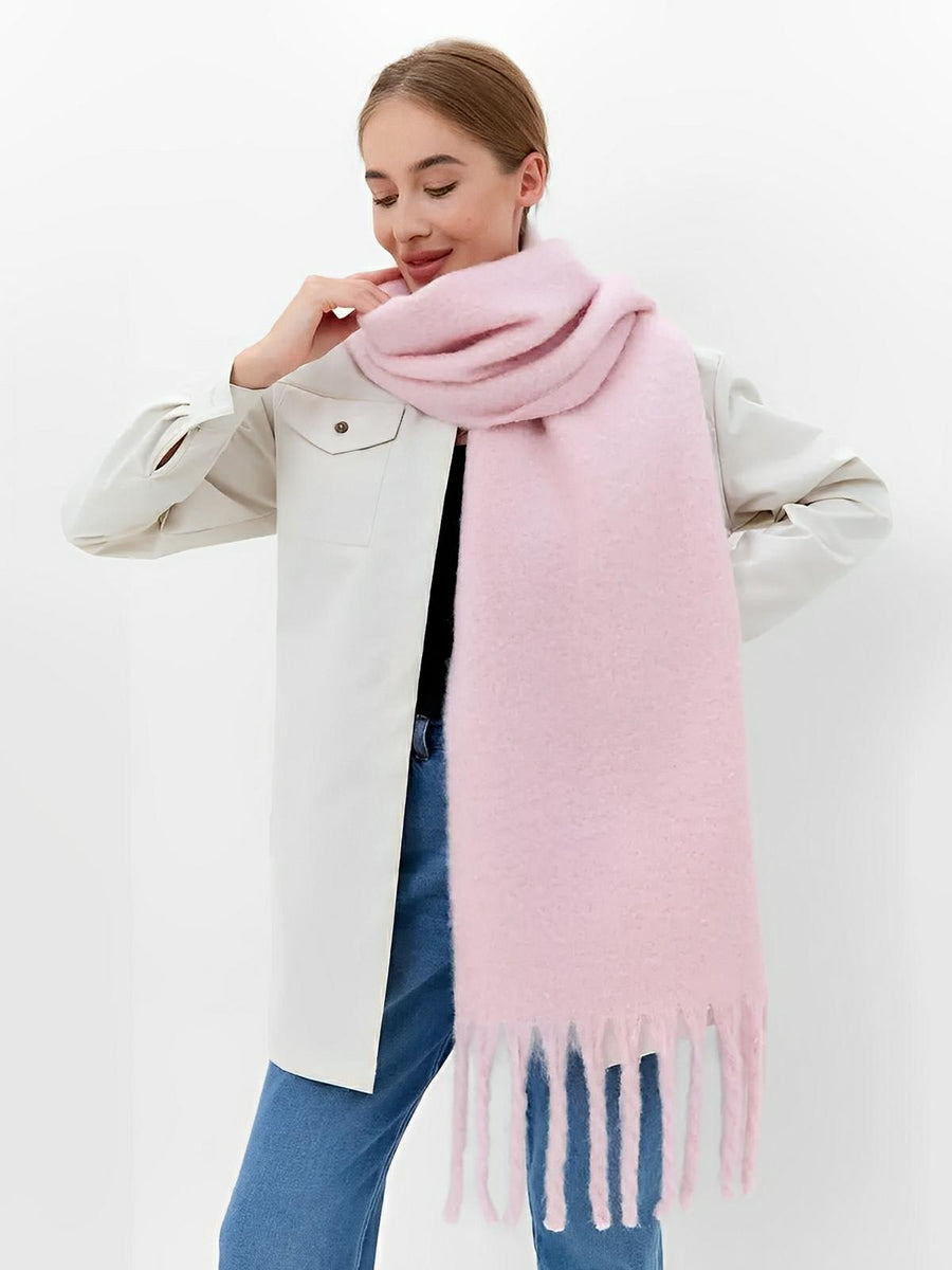 Sciarpa donna inverno, lunga sciarpa calda, con frange morbide, maglia unita, 40x210 cm, modello Justine