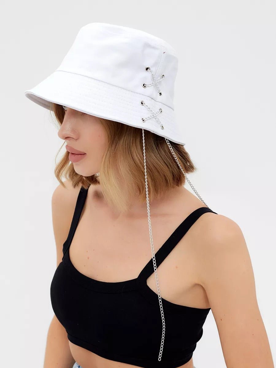 Bob in cotone unisex, cappello streetwear, con catene, accessorio Y2K, modello Kaina