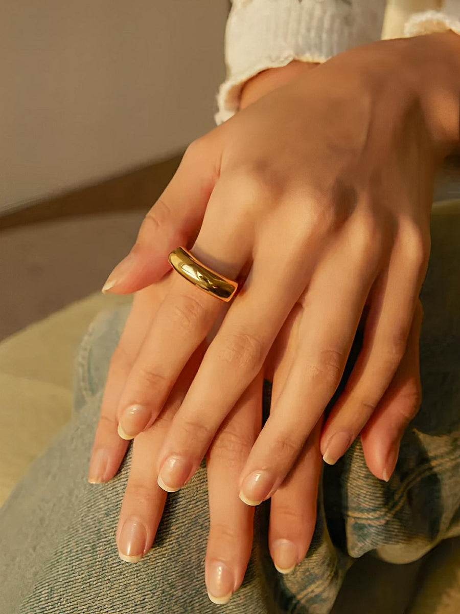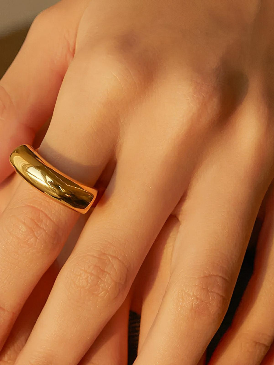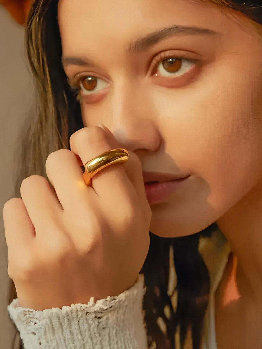 Anello in acciaio inossidabile, irregolare da donna, liscio oro 18K, concavo e convesso, gioiello di tendenza geometrico, modello Karenn