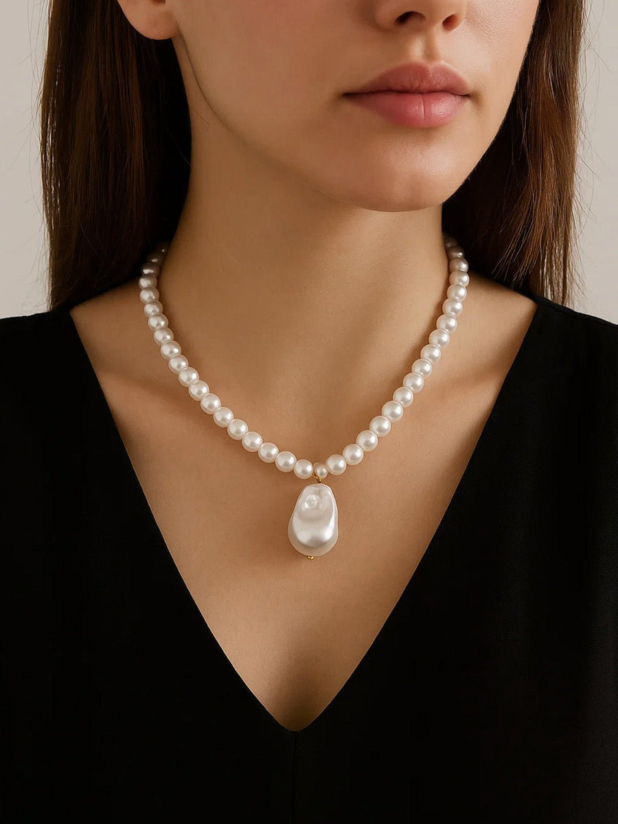 Collana di perle bianche in acrilico, pendente barocco, acciaio inossidabile, catena regolabile, modello Katy