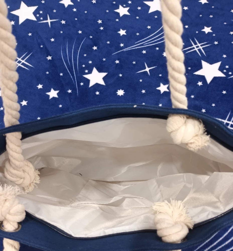 Grazie alla sua chiusura con zip sulla parte superiore, i vostri effetti personali restano al sicuro anche durante gli spostamenti più movimentati. Perfetta come borsa da spiaggia, si adatta anche alle passeggiate in città o al mercato.