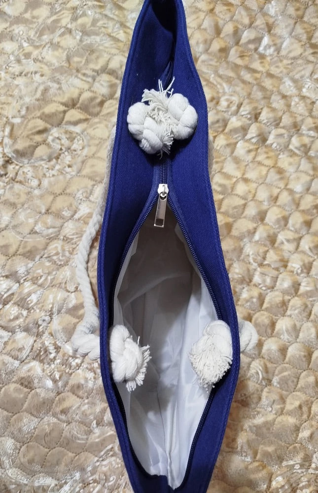 Le sue manici in corda naturale intrecciata aggiungono un tocco autentico e garantiscono una presa confortevole, sia a spalla che a mano. L'interno, completamente foderato in poliestere, include una tasca interna discreta per tenere chiavi o telefono a portata di mano.