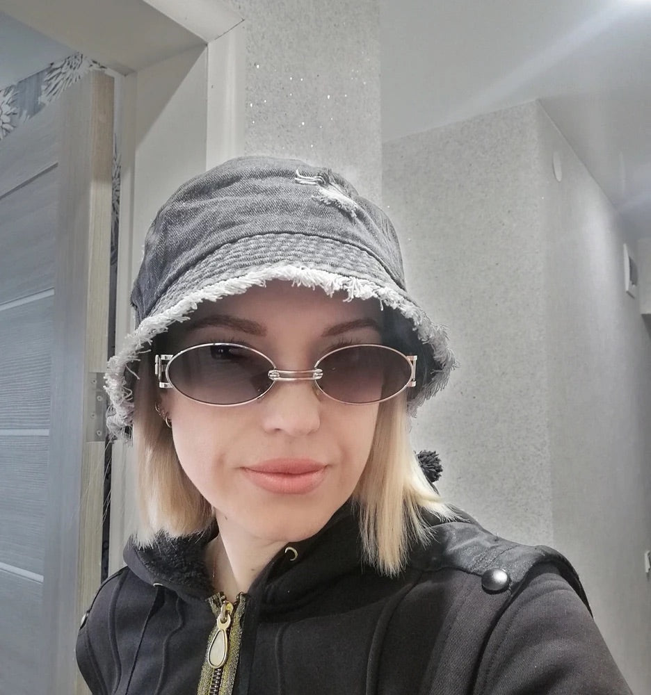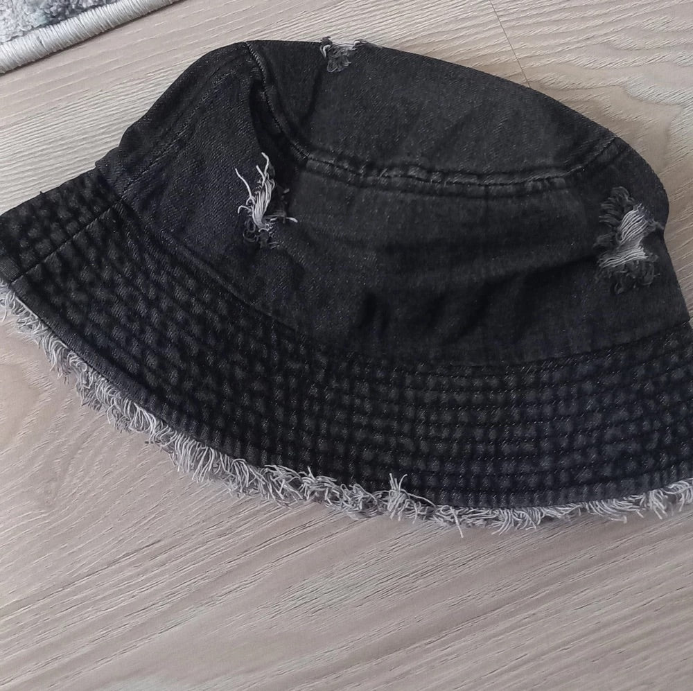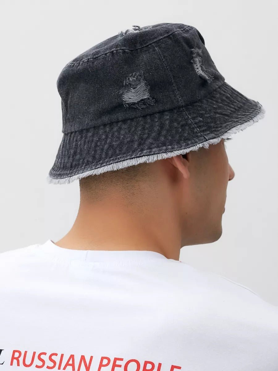 Bob in denim usato, effetto vintage, bordi sfrangiati, stile unisex, tendenza Y2K, modello Kelips