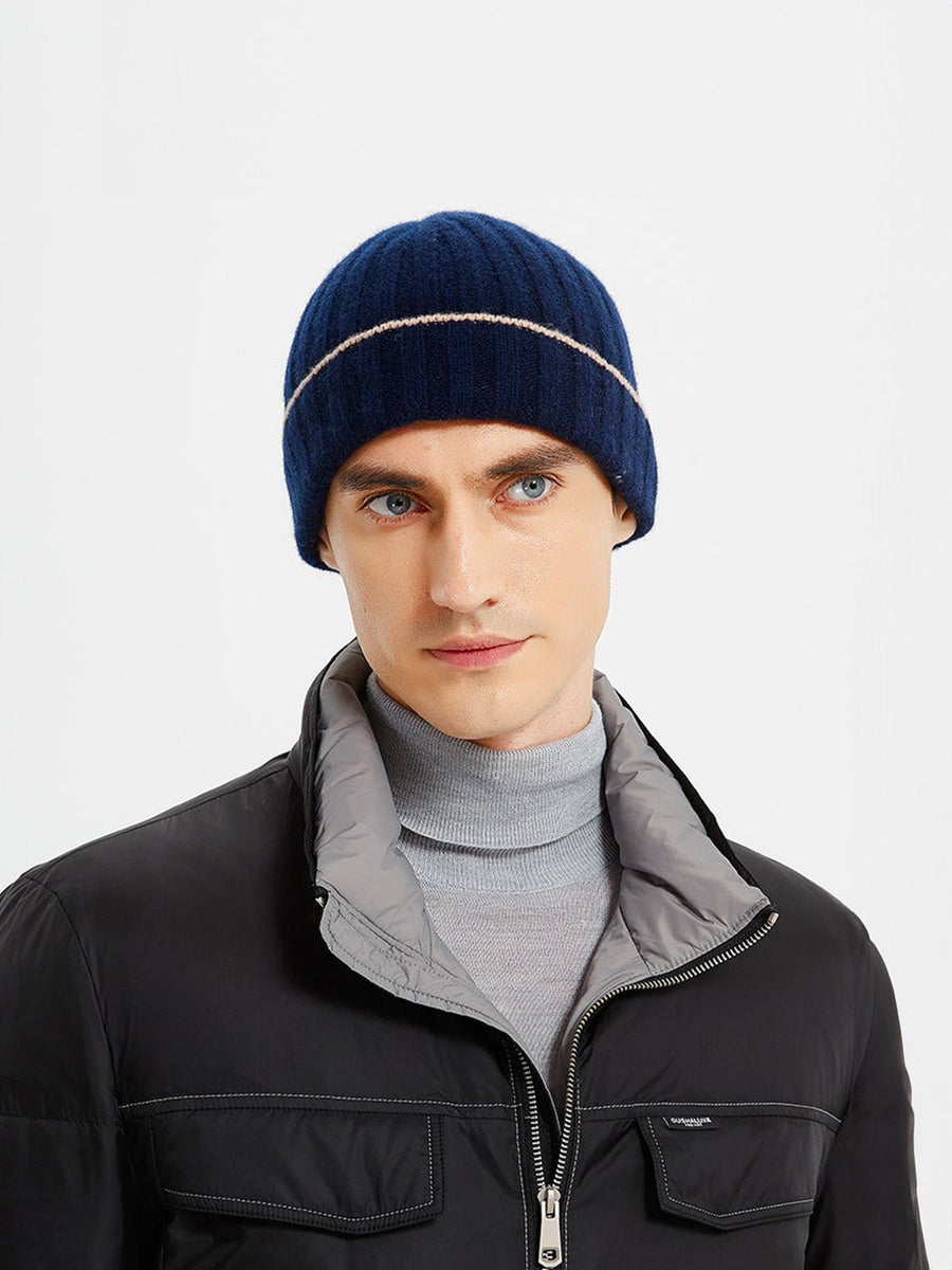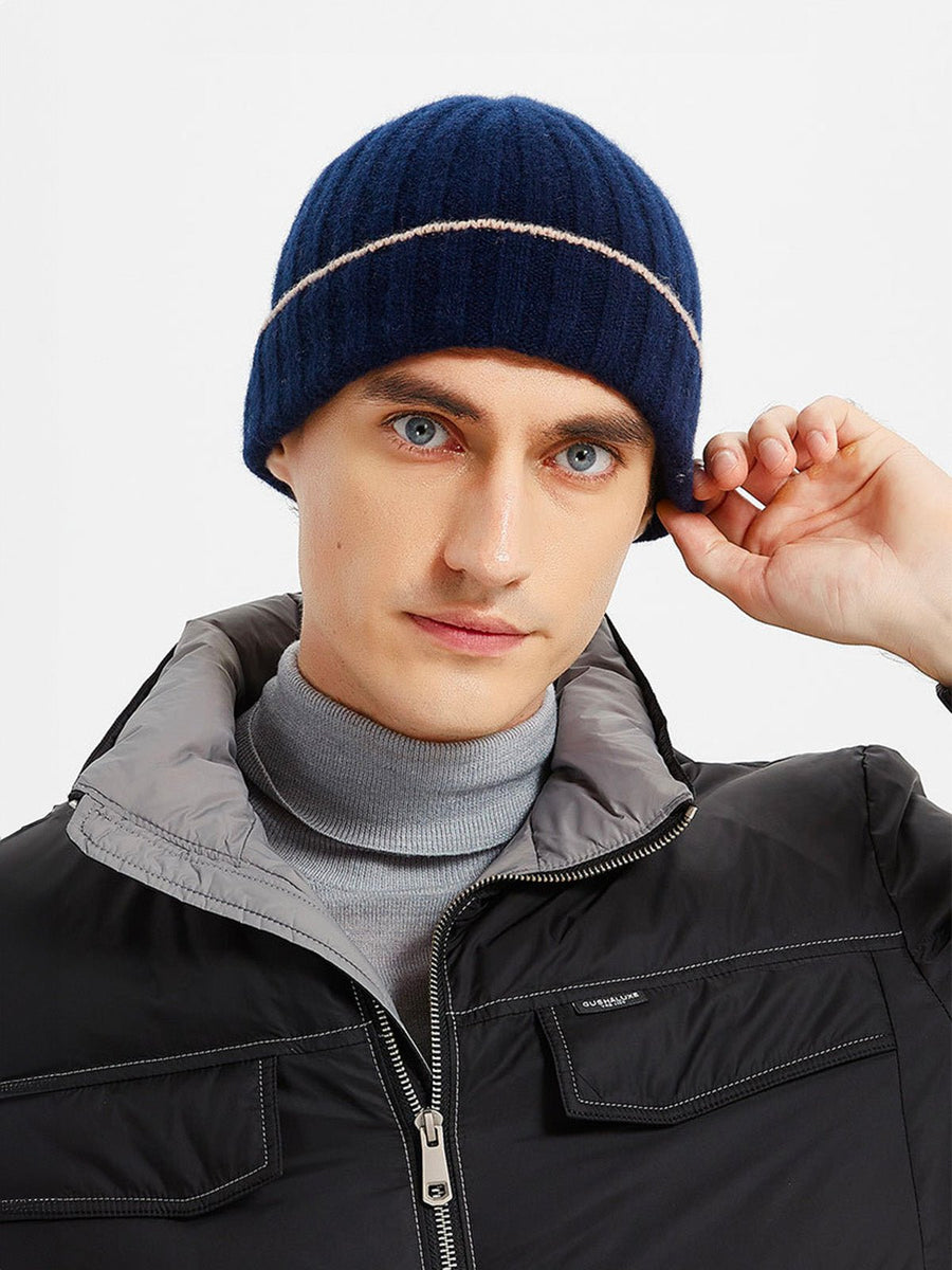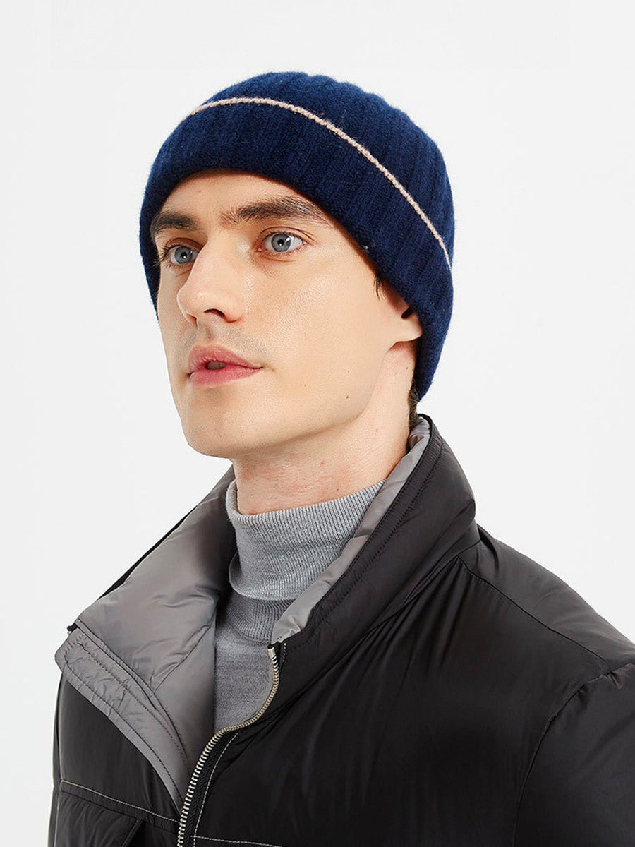 Berretto in lana calda, maglia a coste unisex, risvolto estensibile e confortevole, tocco di colore a contrasto, morbidezza naturale per l’inverno, modello Kinsy