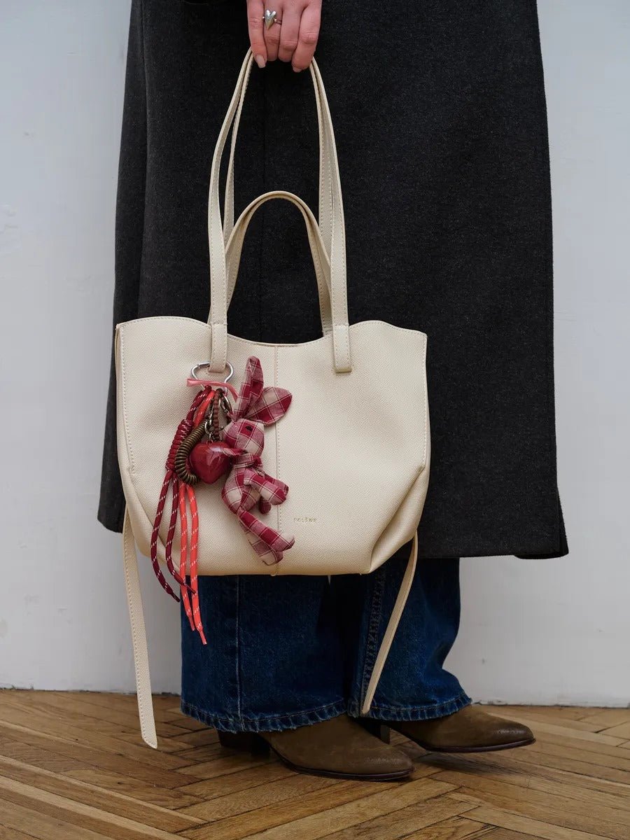 La combinazione di materiali e texture crea un gioco visivo che cattura lo sguardo, mentre il piccolo coniglio cucito con attenzione diventa un compagno discreto per la vita quotidiana. Questo bijou da borsa è anche un’eccellente idea regalo per sorprendere e far felice chi amate.