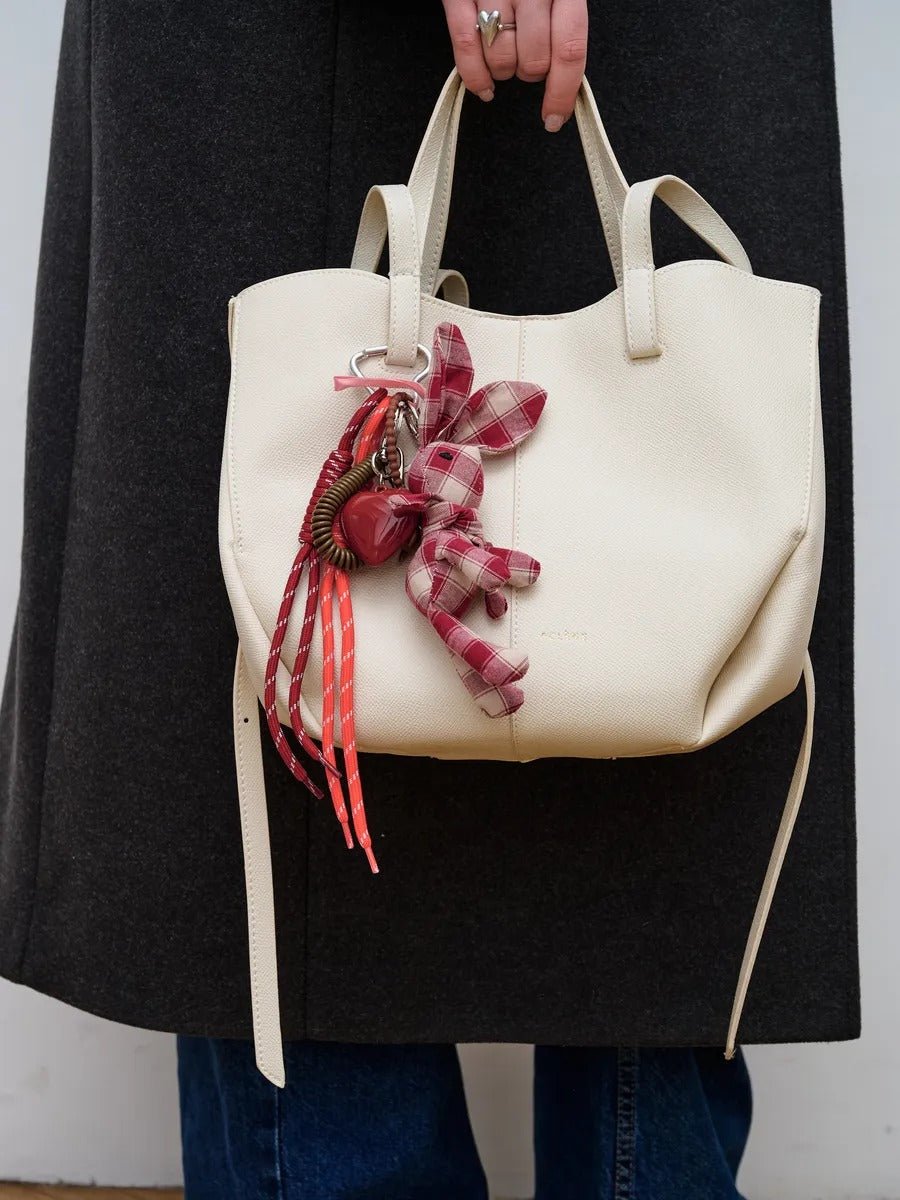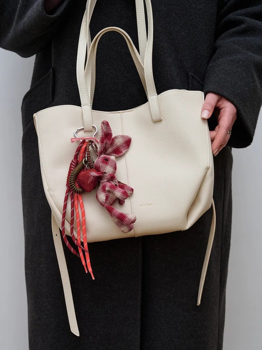 Aggiungete un tocco di carattere alla vostra borsa con questo bijou da borsa giocoso e accattivante. Composto da un coniglietto in tessuto a motivo vichy, un cuore rosso in resina lucida e cordoncini tessili colorati, questo accessorio multifunzione valorizza istantaneamente il vostro stile.