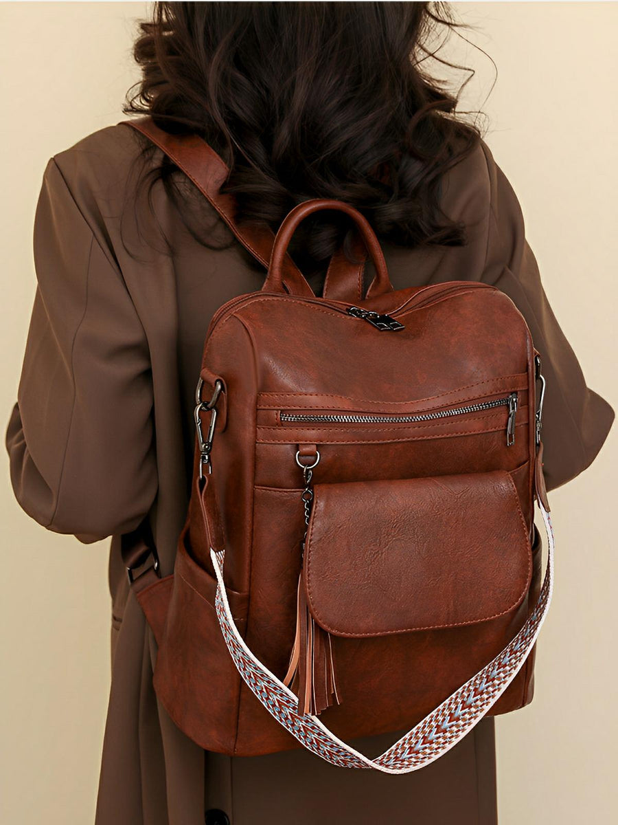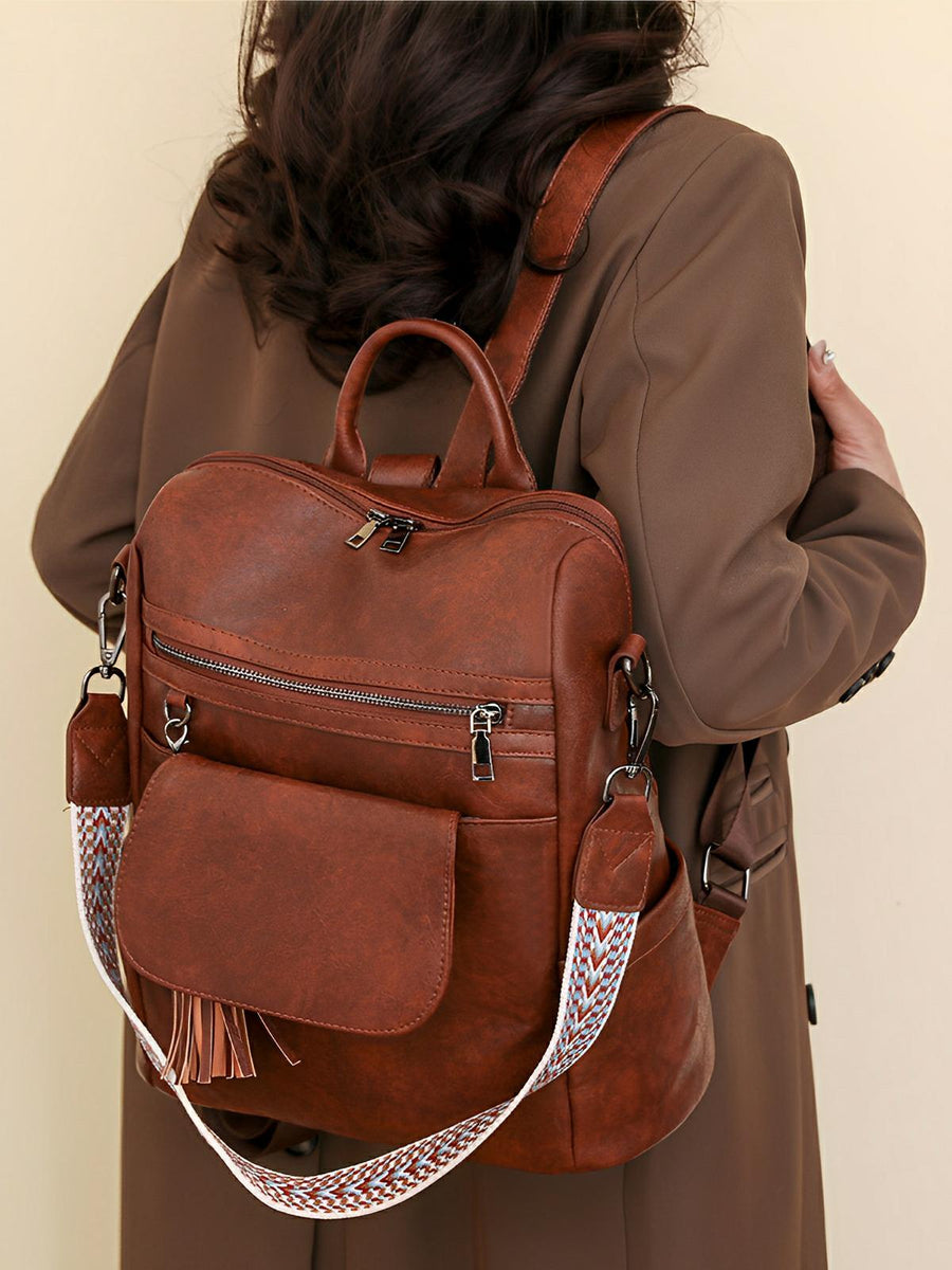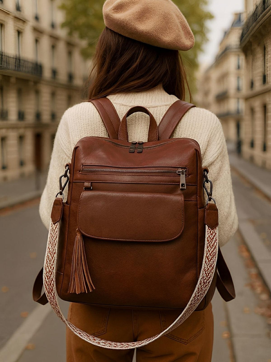Zaino da donna in similpelle vegana, grande capacità, stile vintage, convertibile in borsa a tracolla, con tasche multiple, modello Laura