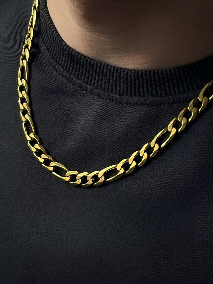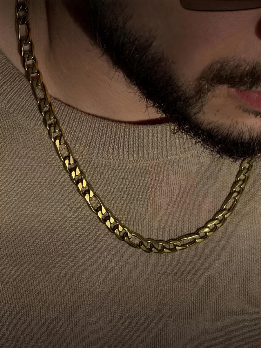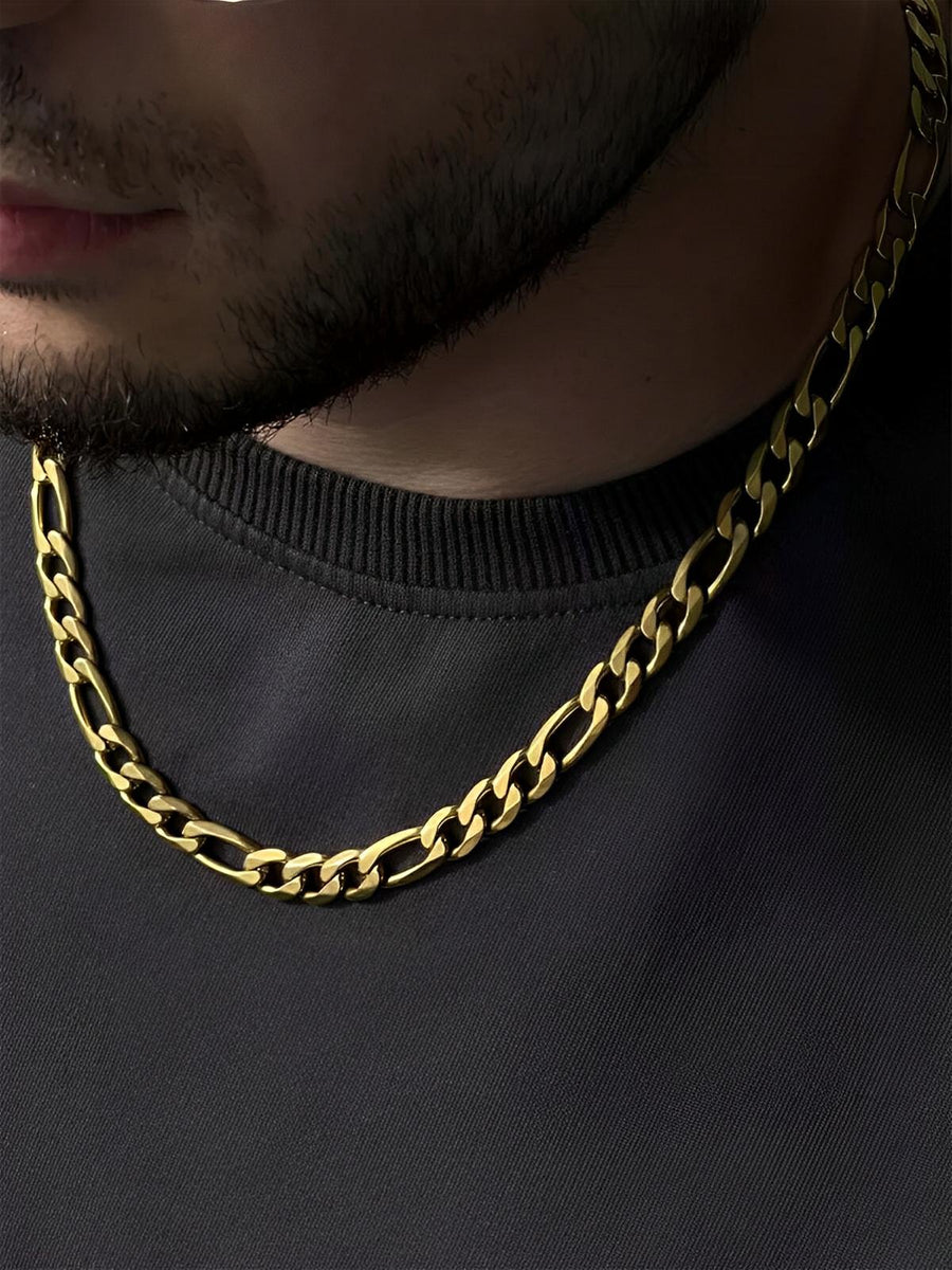 Questa catena è dotata di una chiusura a moschettone pratica che assicura una tenuta sicura e permette di indossarla o toglierla facilmente. Disponibile con finitura oro o argento, si adatta perfettamente a qualsiasi stile, dagli abbinamenti casual agli outfit più eleganti. Il suo design raffinato a maglia Figaro aggiunge un tocco sofisticato che si adatta sia agli uomini maturi sia ai giovani che desiderano un look moderno e deciso.