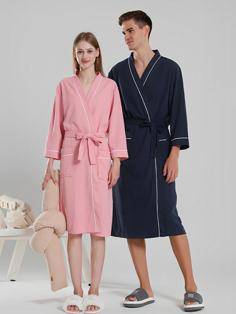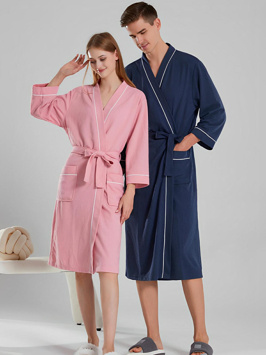 Accappatoio uomo donna, cotone a nido d'ape morbido, cintura regolabile, tasche pratiche, collo a V moderno, accappatoio lungo leggero, accappatoio da bagno confortevole, accappatoio da casa, modello Lermi
