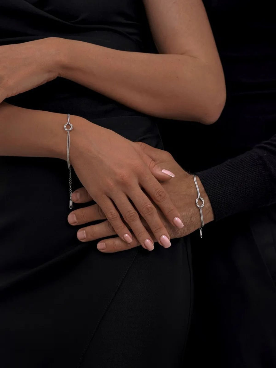 Realizzato in acciaio inossidabile di qualità medicale con una placcatura in titanio, questo gioiello è ipoallergenico e resiste all’acqua, al sudore e alla corrosione. Grazie alla sua catena di estensione da 5 cm , si adatta a tutte le morfologie, dal polso più sottile a quello più largo.