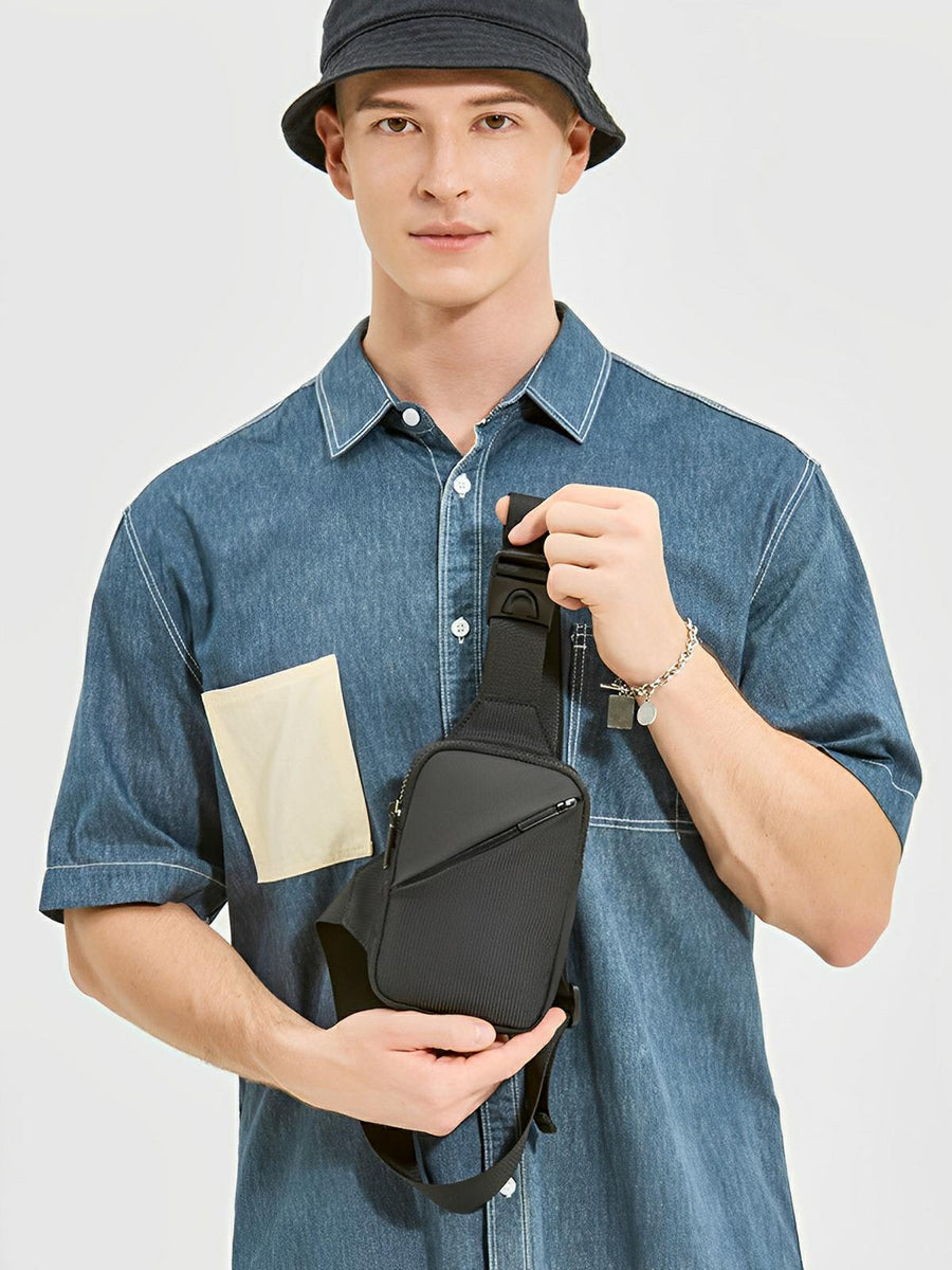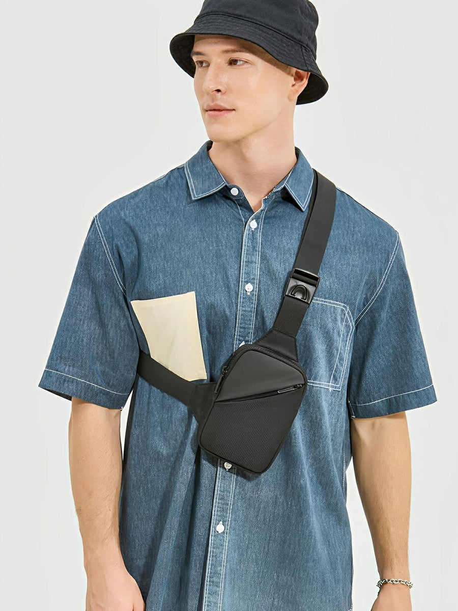 La disposizione ingegnosa comprende due tasche esterne con zip e una tasca interna sicura, offrendo spazio sufficiente per un telefono, un portafoglio, delle chiavi e altri piccoli oggetti indispensabili. Il suo formato compatto permette un accesso rapido ai vostri effetti personali senza ingombro.