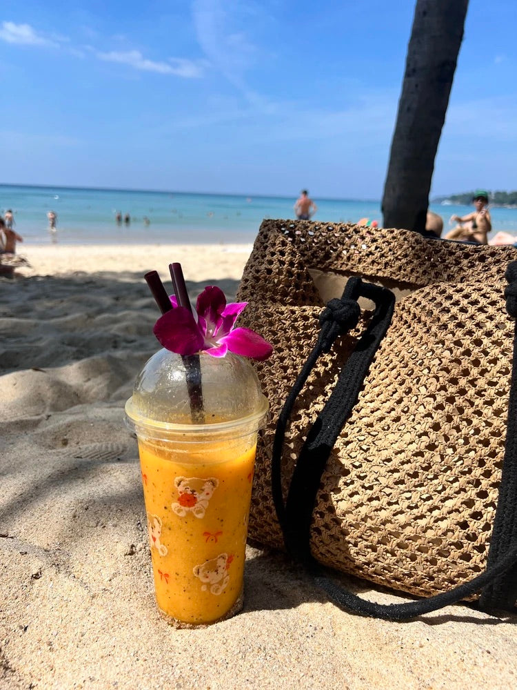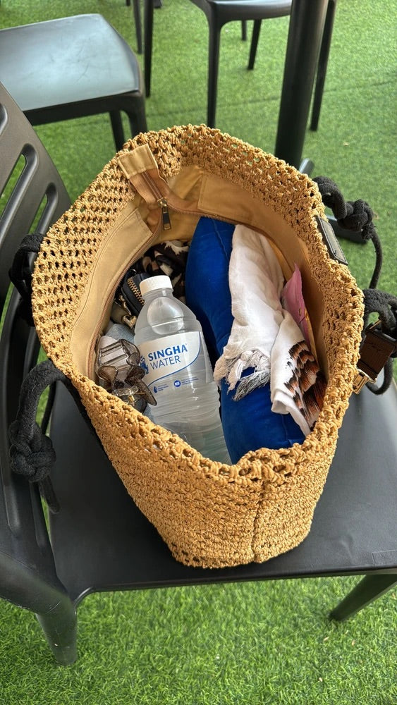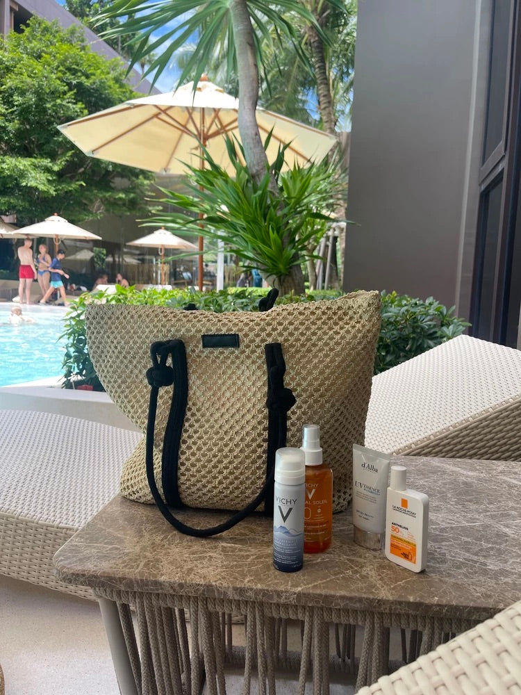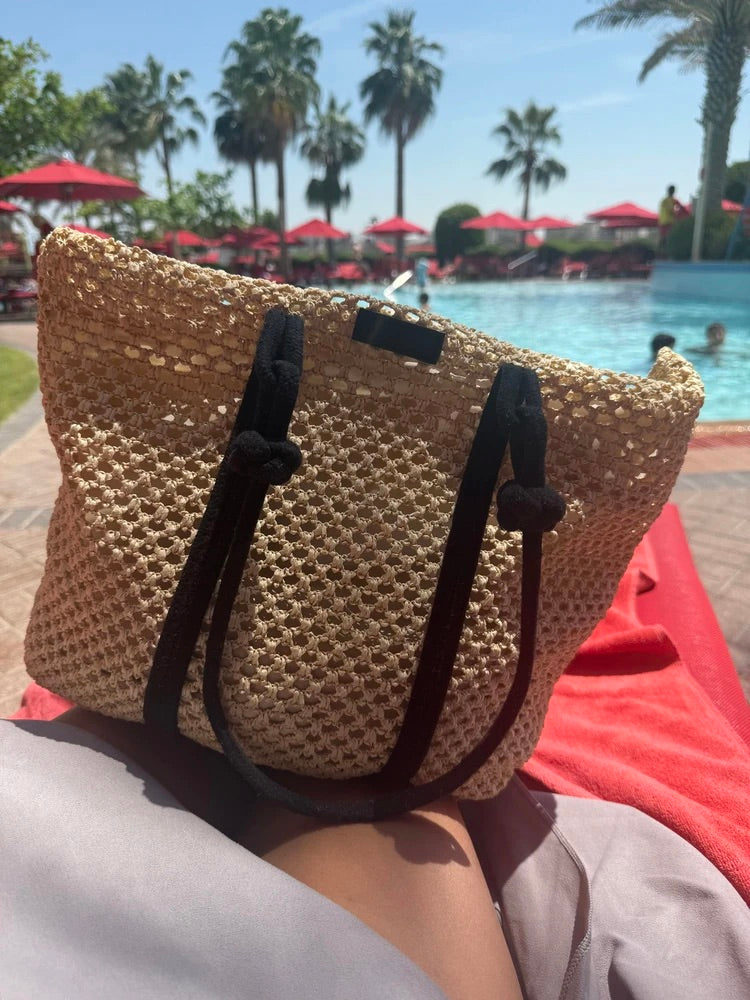 Progettata per le giornate di sole, questa shopper in rafia intrecciata unisce perfettamente fascino estivo e funzionalità. La sua struttura a grande capacità consente di riporre tutto il necessario per le vostre fughe al mare, in città o nei fine settimana.