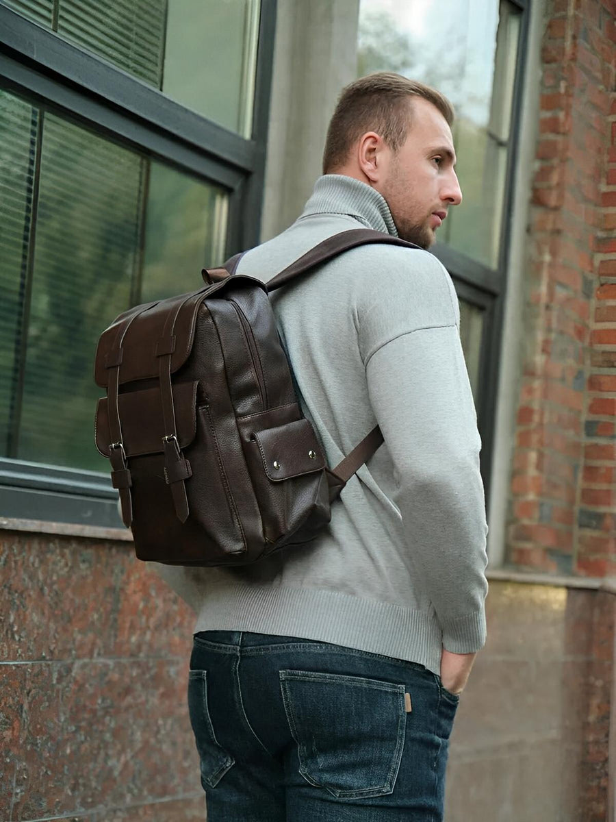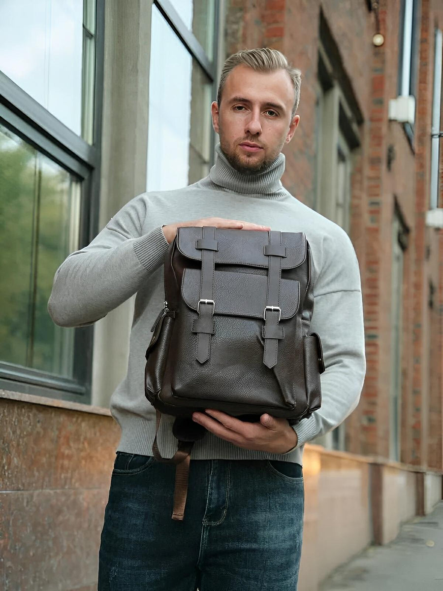 Il sistema di chiusura magnetica con patta in pelle e fibbie metalliche aggiunge un tocco funzionale ed estetico, combinando sicurezza e stile. Perfetto per l’ufficio, le lezioni o i viaggi, questo zaino è l’alleato ideale per un’organizzazione senza compromessi.