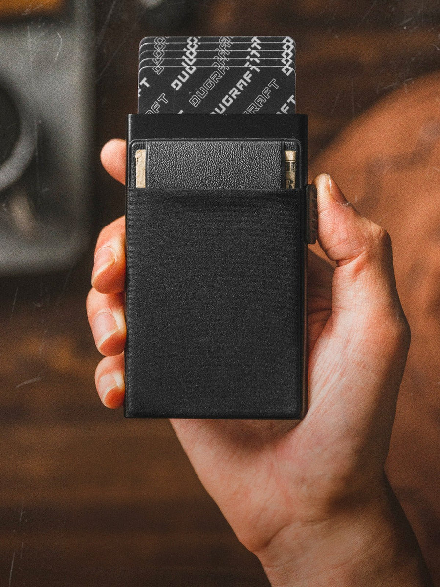 Scoprite il portafoglio compatto pensato per gli usi quotidiani più esigenti. Con la sua struttura in alluminio robusta e il suo formato ultra sottile, offre una soluzione moderna e sicura per trasportare le vostre carte e le vostre banconote.