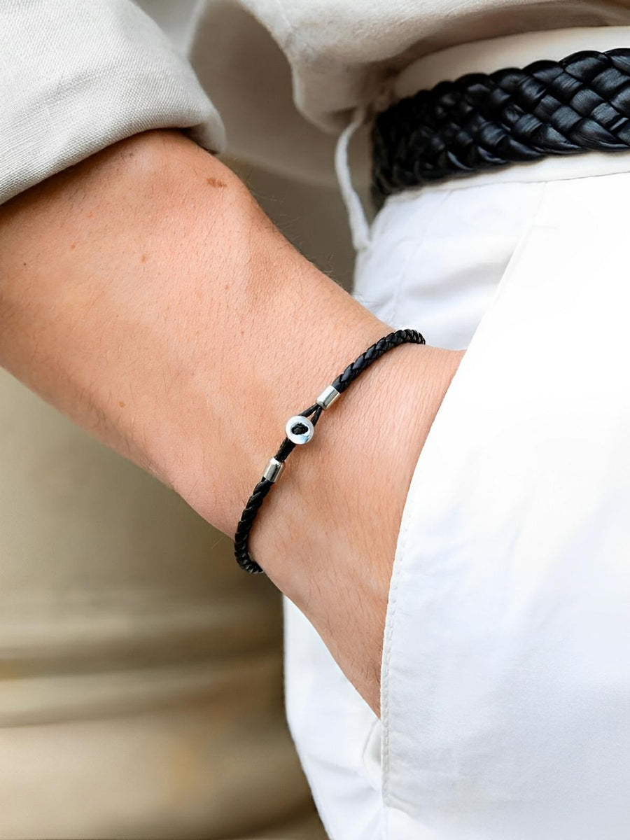 Bracciale da uomo in pelle intrecciata, discreto e raffinato, resistente a ogni prova, modello Madéo