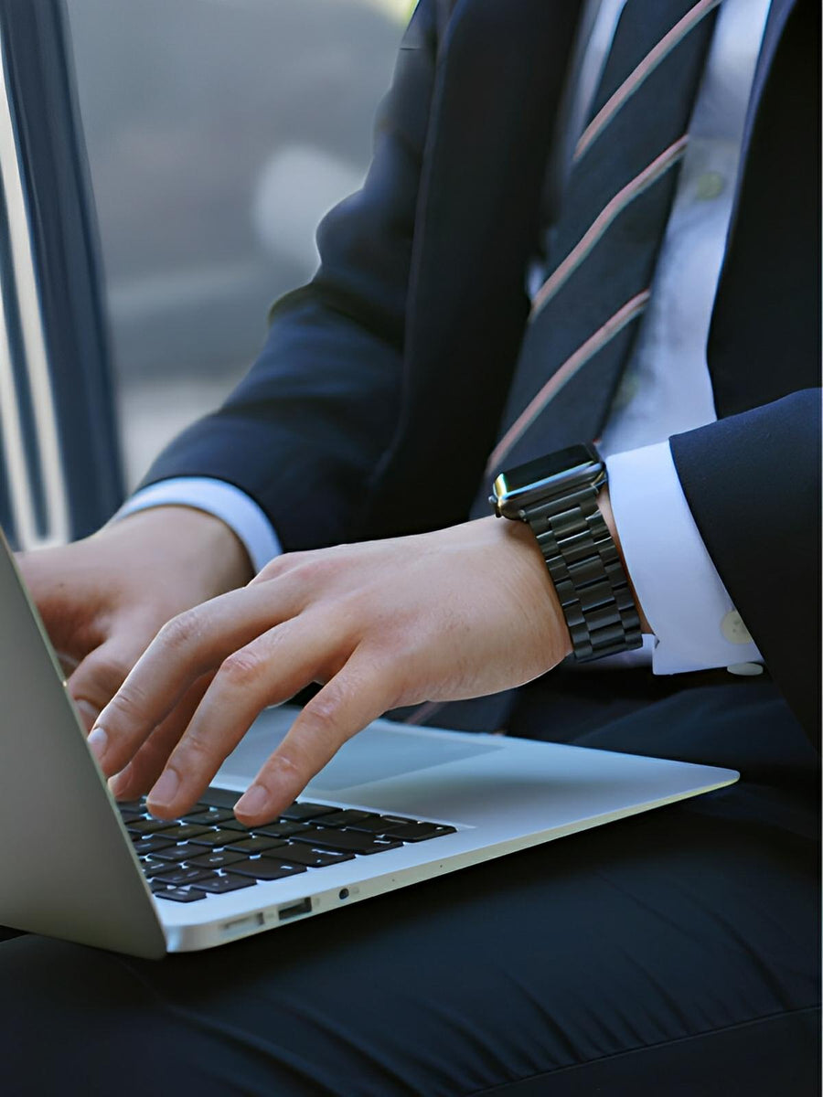 Bracciale in acciaio inossidabile per Apple Watch, design raffinato, maglie regolabili, chiusura invisibile, comfort e stile, modello Major