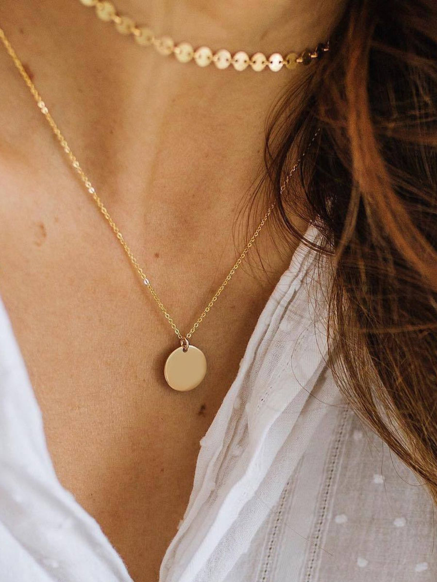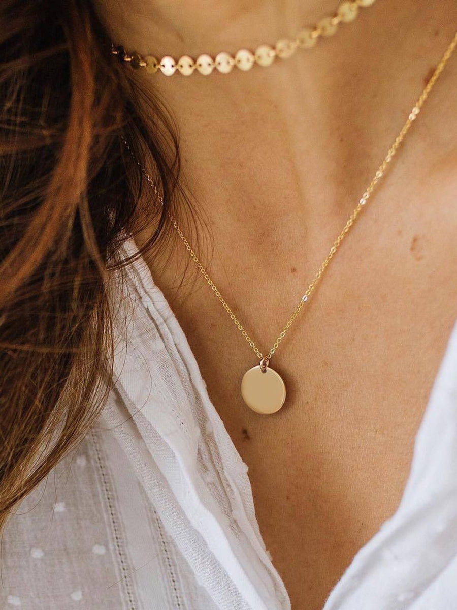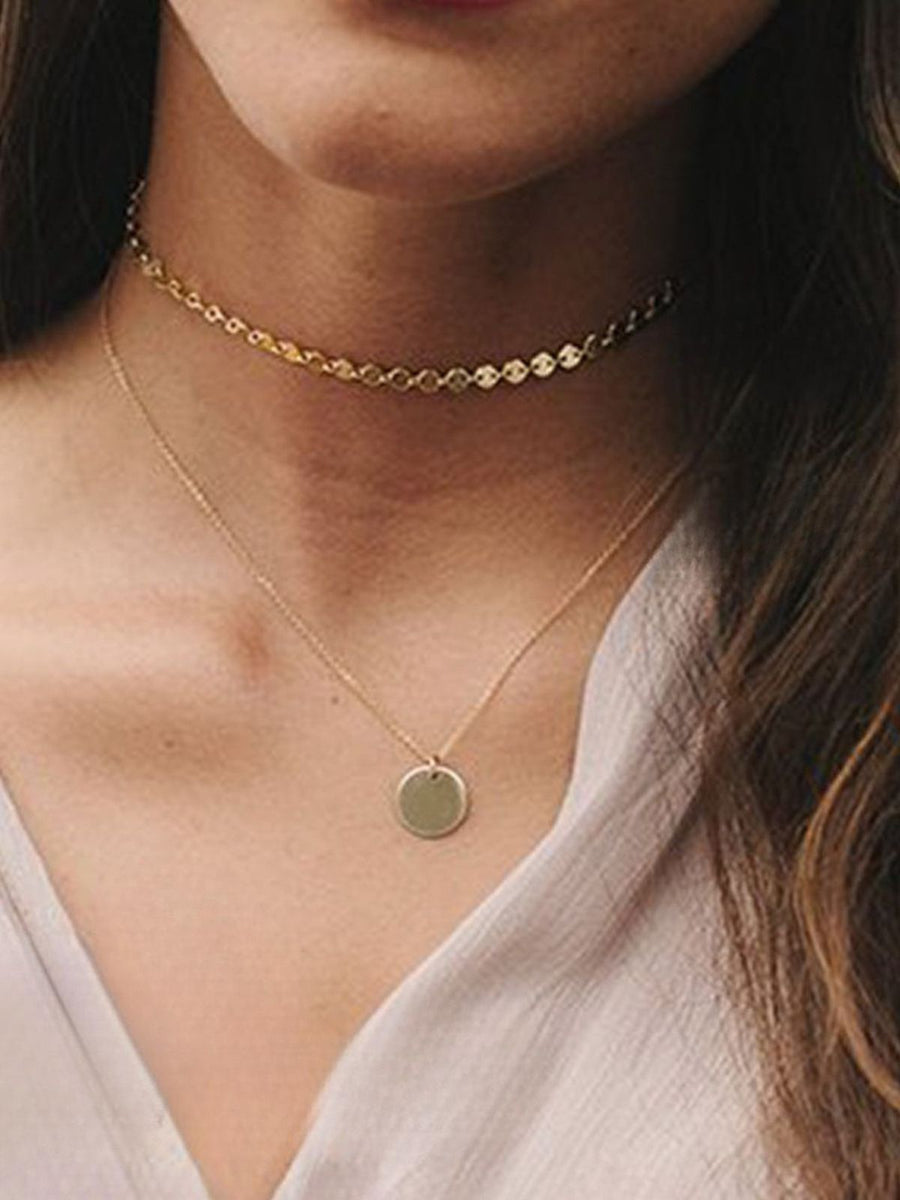 Collana doppio giro da donna, acciaio inossidabile, ciondolo rotondo, catena sottile, dorata o argentata, modello Margot