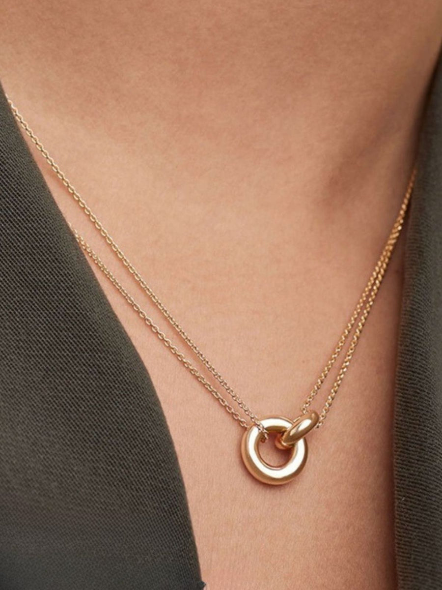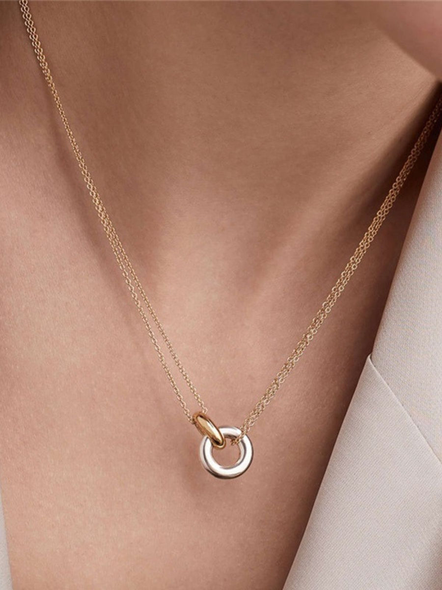 Collana in acciaio inossidabile, pendente rotondo geometrico, doppia catena sottile, oro e argento, stile di tendenza, modello Mariana