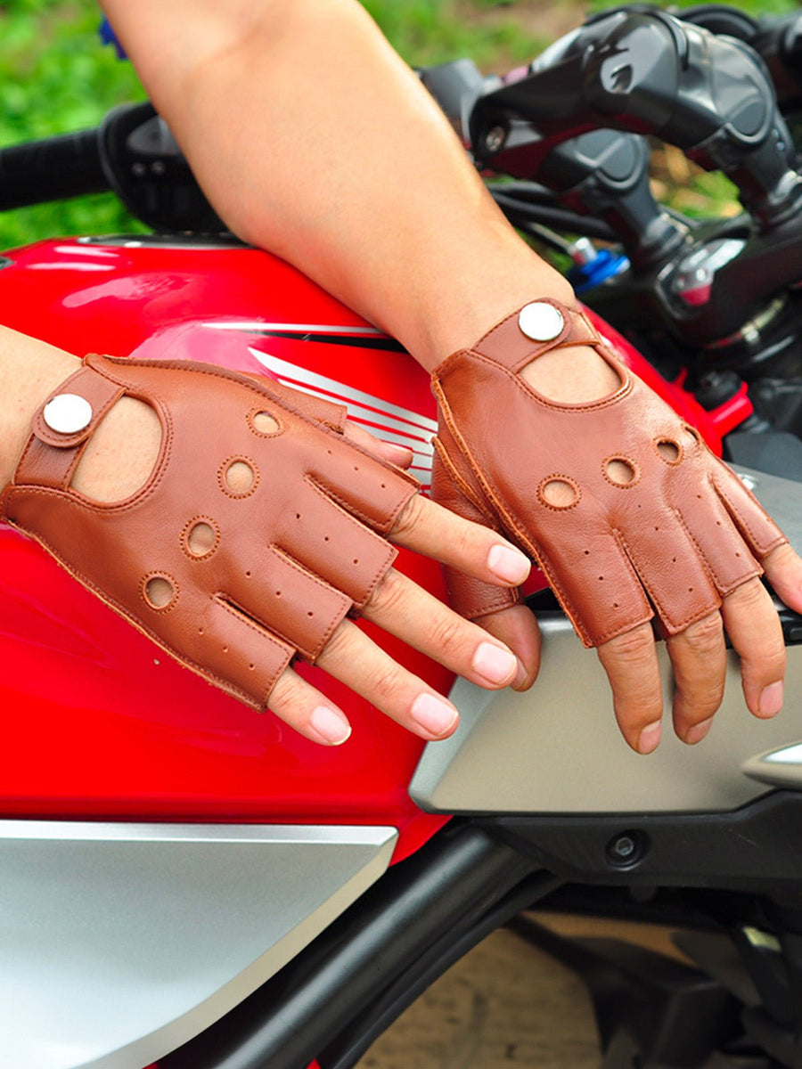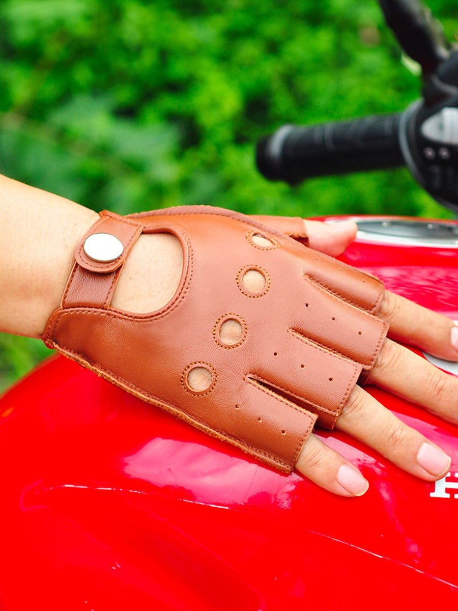 Guanti mezze dita da uomo in pelle, guanti moto vintage in pelle, guanti da guida traspiranti, guanti antiscivolo aperti, modello Mecto