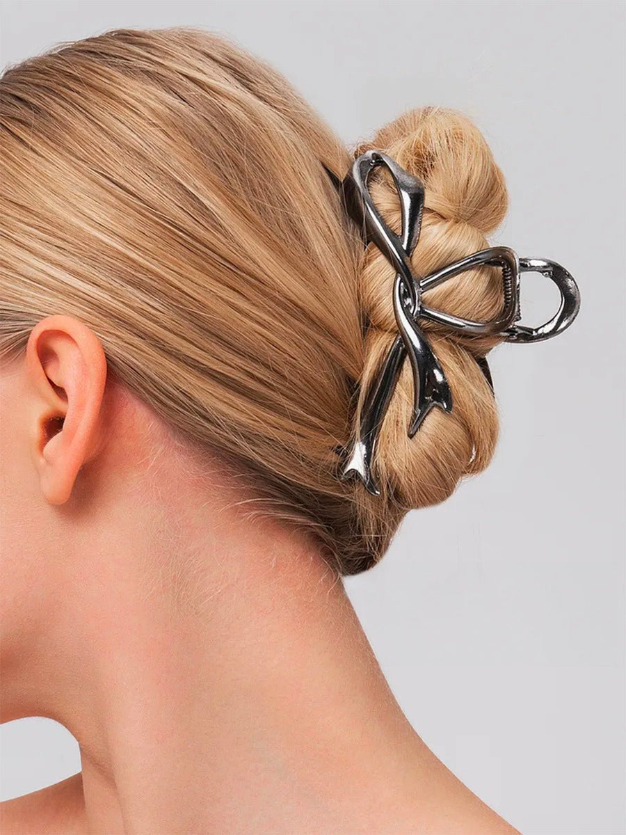 Pince à cheveux in metallo, pinza crabe donna, accessorio per capelli con fiocco, pinza per acconciature capelli lunghi, pinza solida e brillante, modello Mina