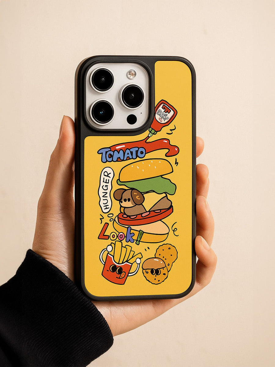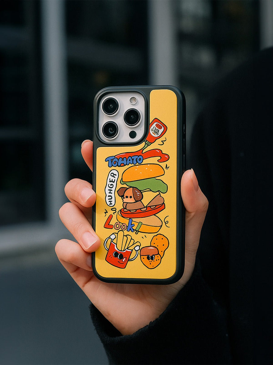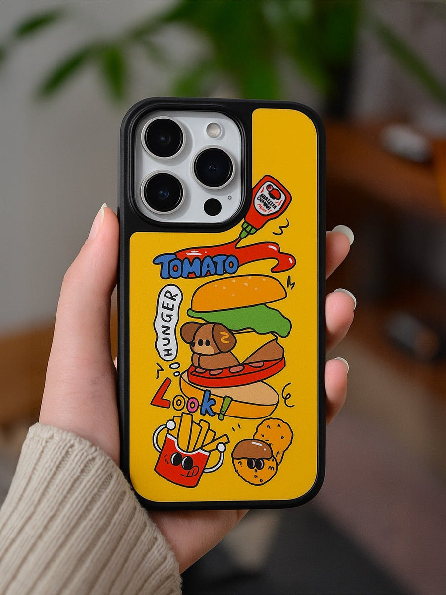 Scoprite questa cover per iPhone con motivo hamburger e cagnolino, un tocco giocoso e originale per personalizzare il vostro smartphone. La sua superficie in vetro effetto pelle morbida opaca offre una presa piacevole e confortevole, riducendo al contempo le impronte digitali.