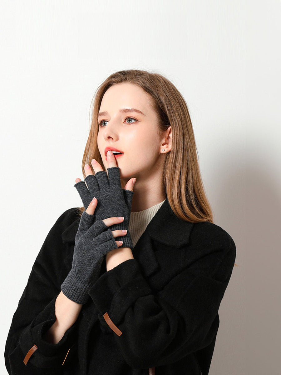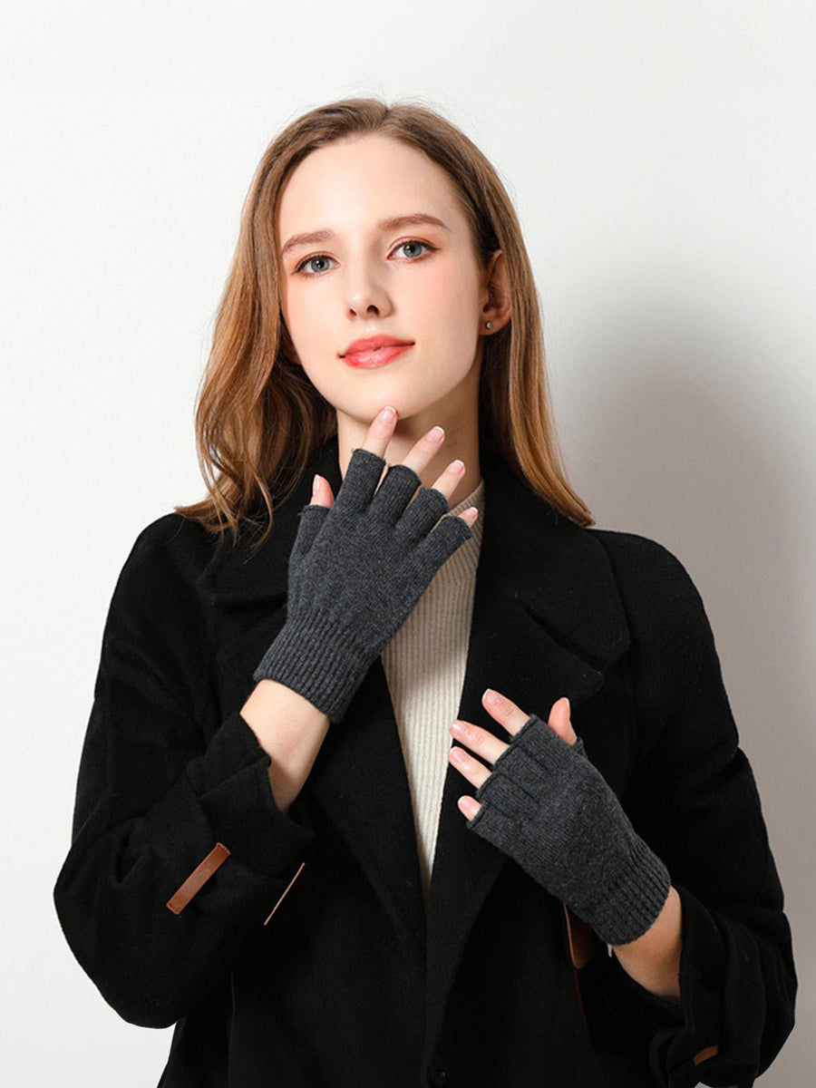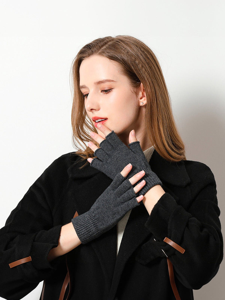 Guanti mitaine, mezze dita, in lana calda per l’inverno, comfort lavorato a maglia per donna, stile sobrio e pratico, modello Mita