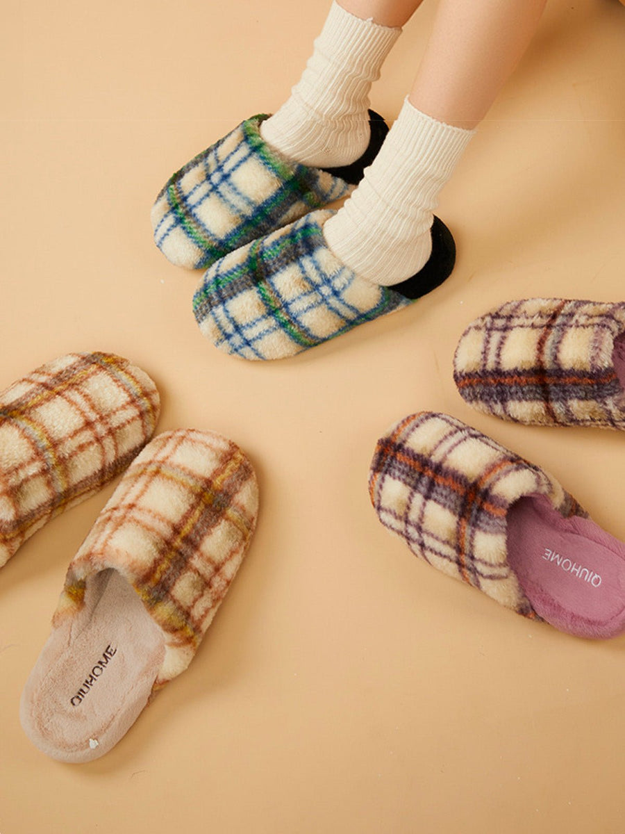 Pantofole calde in peluche a quadri per l’inverno con suola antiscivolo, comode per la casa e adatte sia per donna che per uomo, modello Modan
