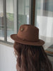 Cappello in feltro da donna, cappello a tesa larga, accessorio moda autunno, feltro morbido e confortevole, con spilla gioiello dorata, modello Murize
