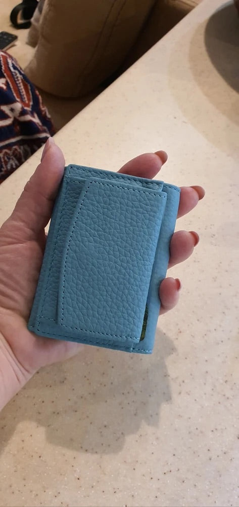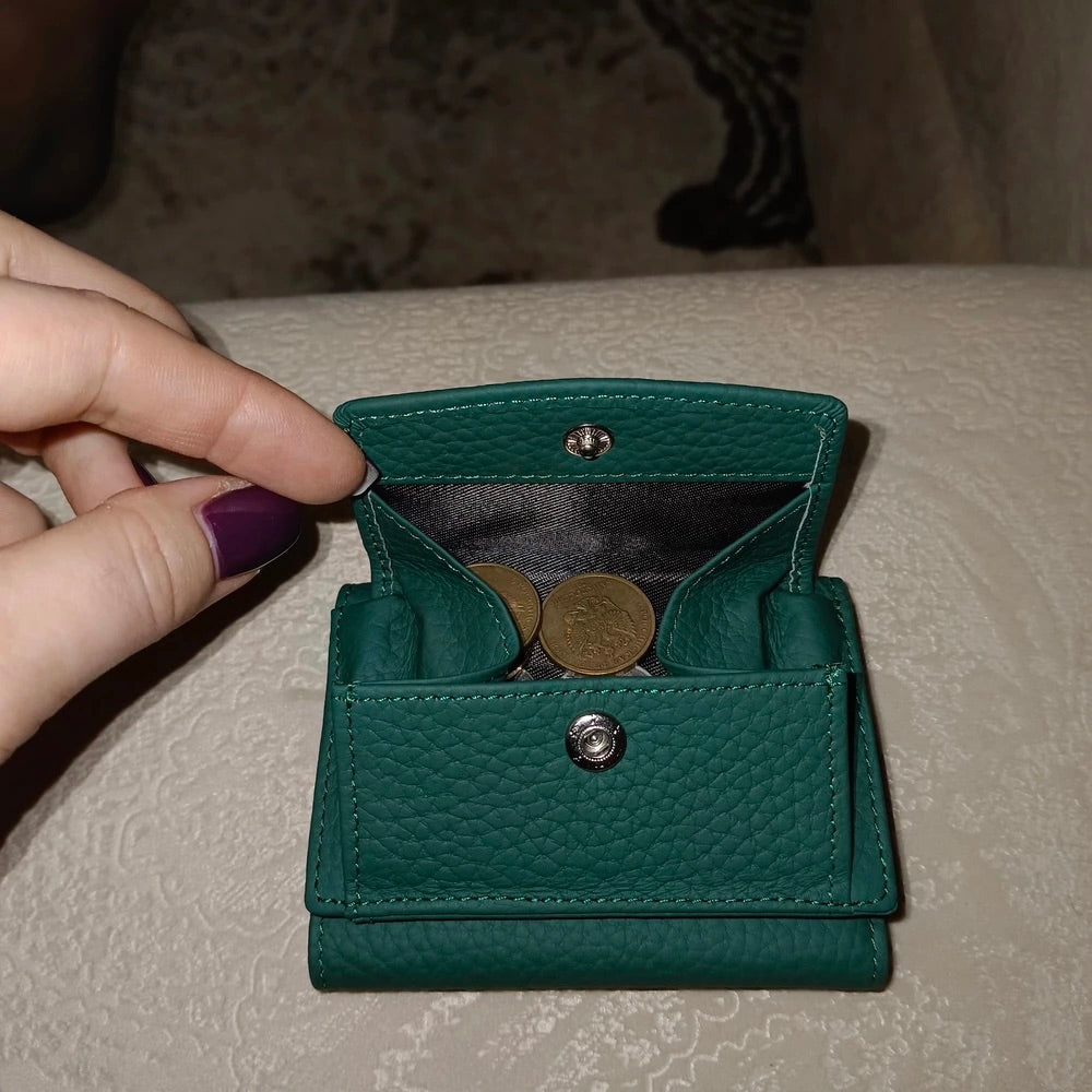 Formato compatto, grande capacità: questo mini portafoglio in vera pelle unisce praticità e funzionalità. Ideale per borse di piccole dimensioni o tasche di giacche, si inserisce ovunque senza sforzo.