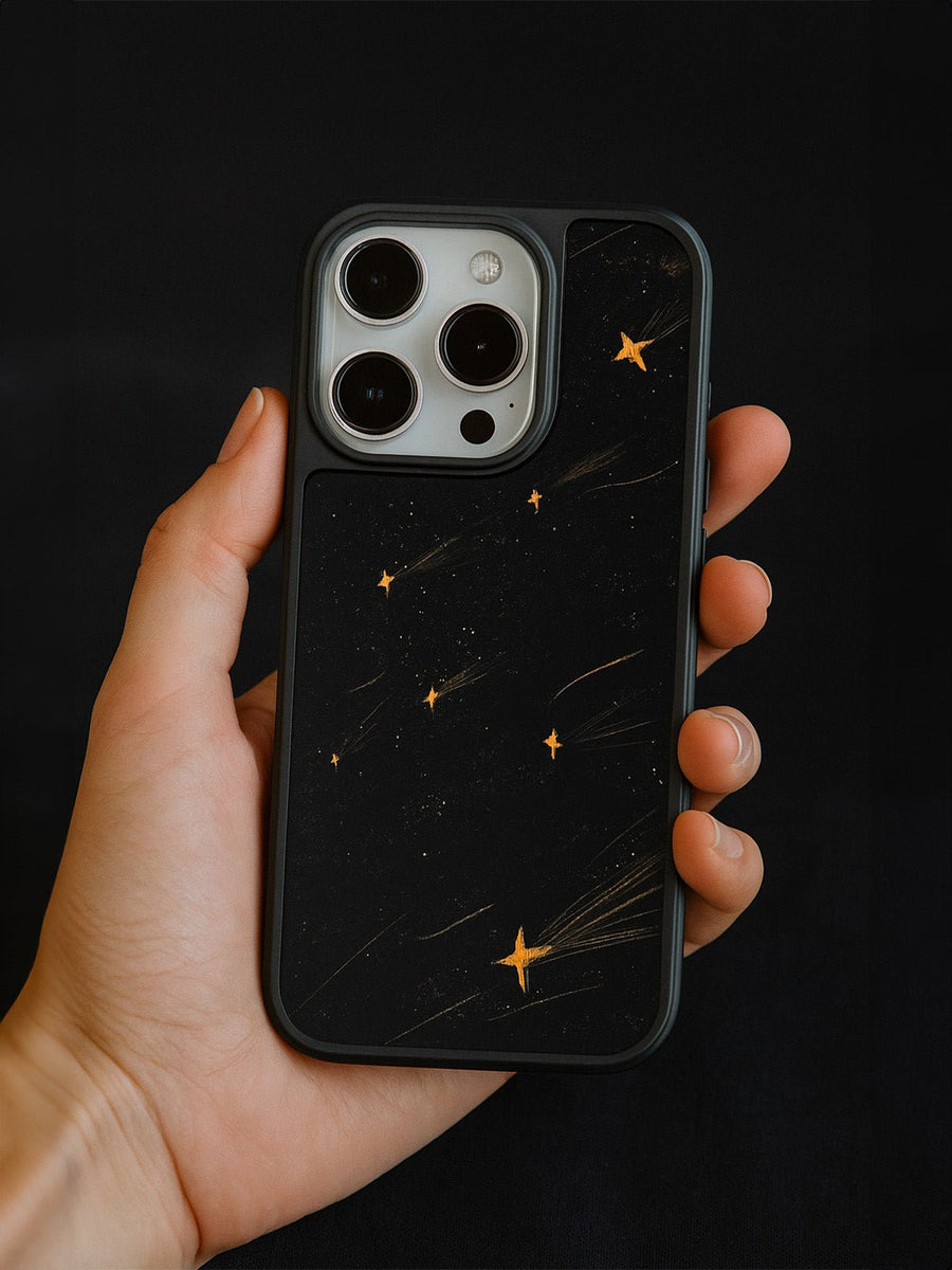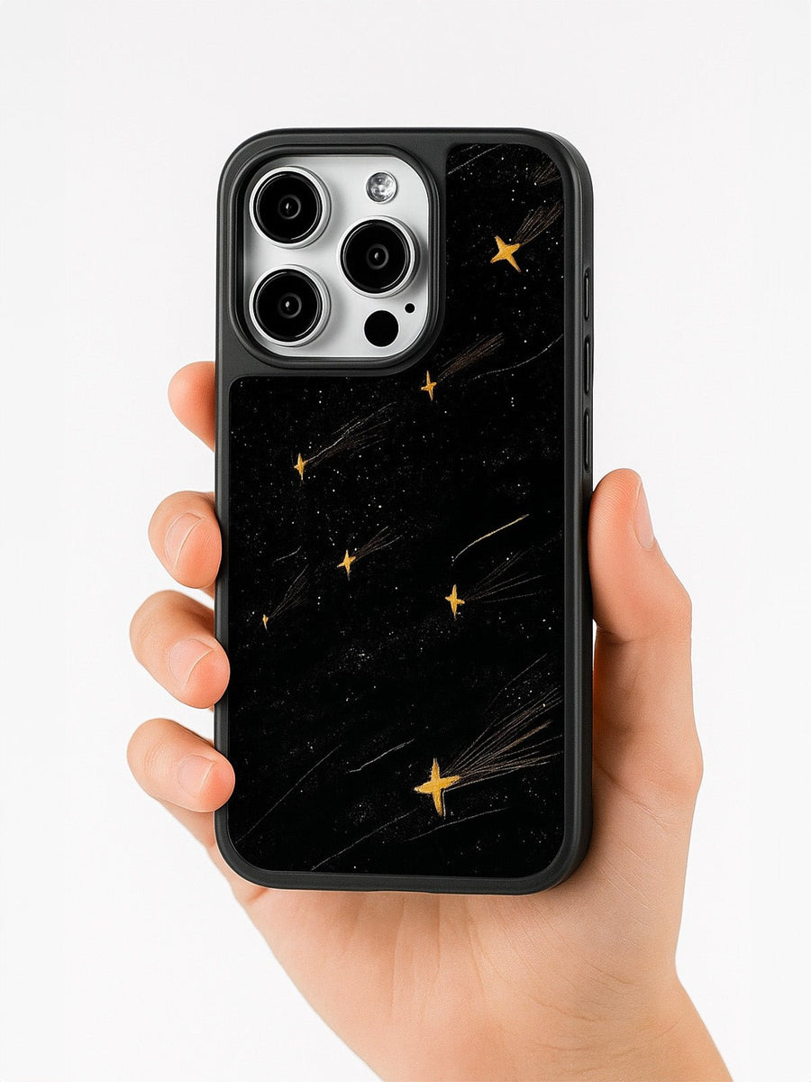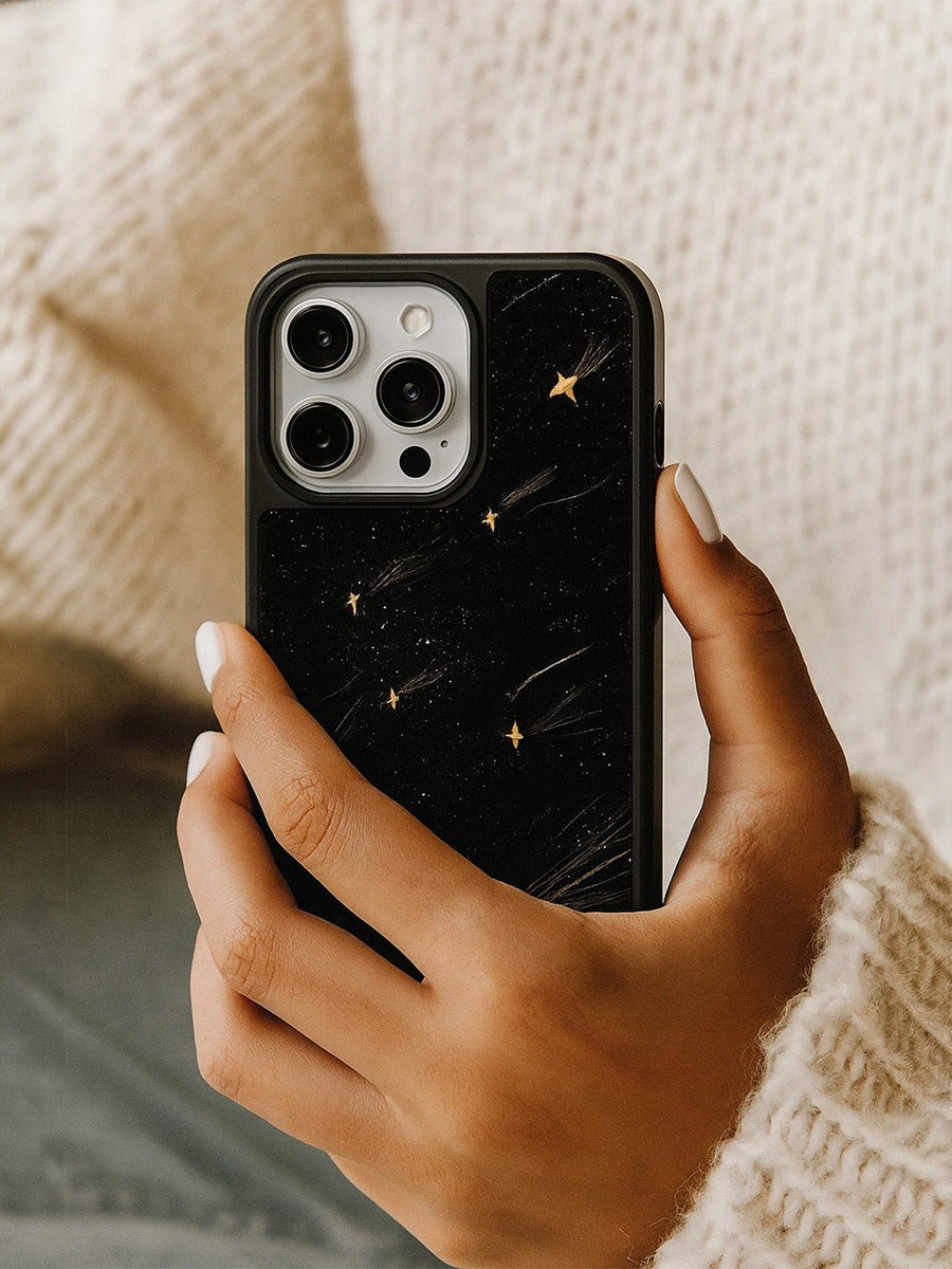 Scoprite questa custodia progettata per valorizzare il vostro iPhone offrendo al contempo una protezione ottimale. Con il suo motivo a stelle dorate delicatamente integrato su uno sfondo nero profondo, afferma uno stile decisamente moderno e deciso. La superficie opaca testurizzata offre una piacevole sensazione al tatto e limita le impronte digitali, per un utilizzo quotidiano impeccabile.