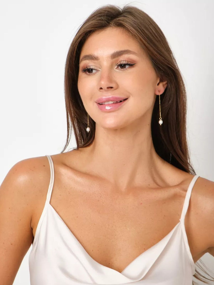 Questi orecchini lunghi con perle barocche uniscono la purezza delle perle d’acqua dolce alla raffinata luminosità dell’acciaio titanio placcato oro. Il loro design geometrico moderno è valorizzato da una catena delicata di 5 cm che slancia naturalmente la silhouette.