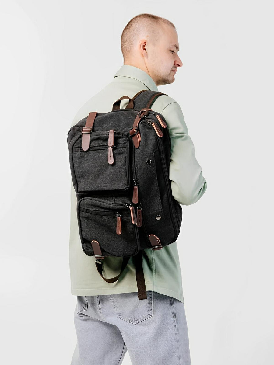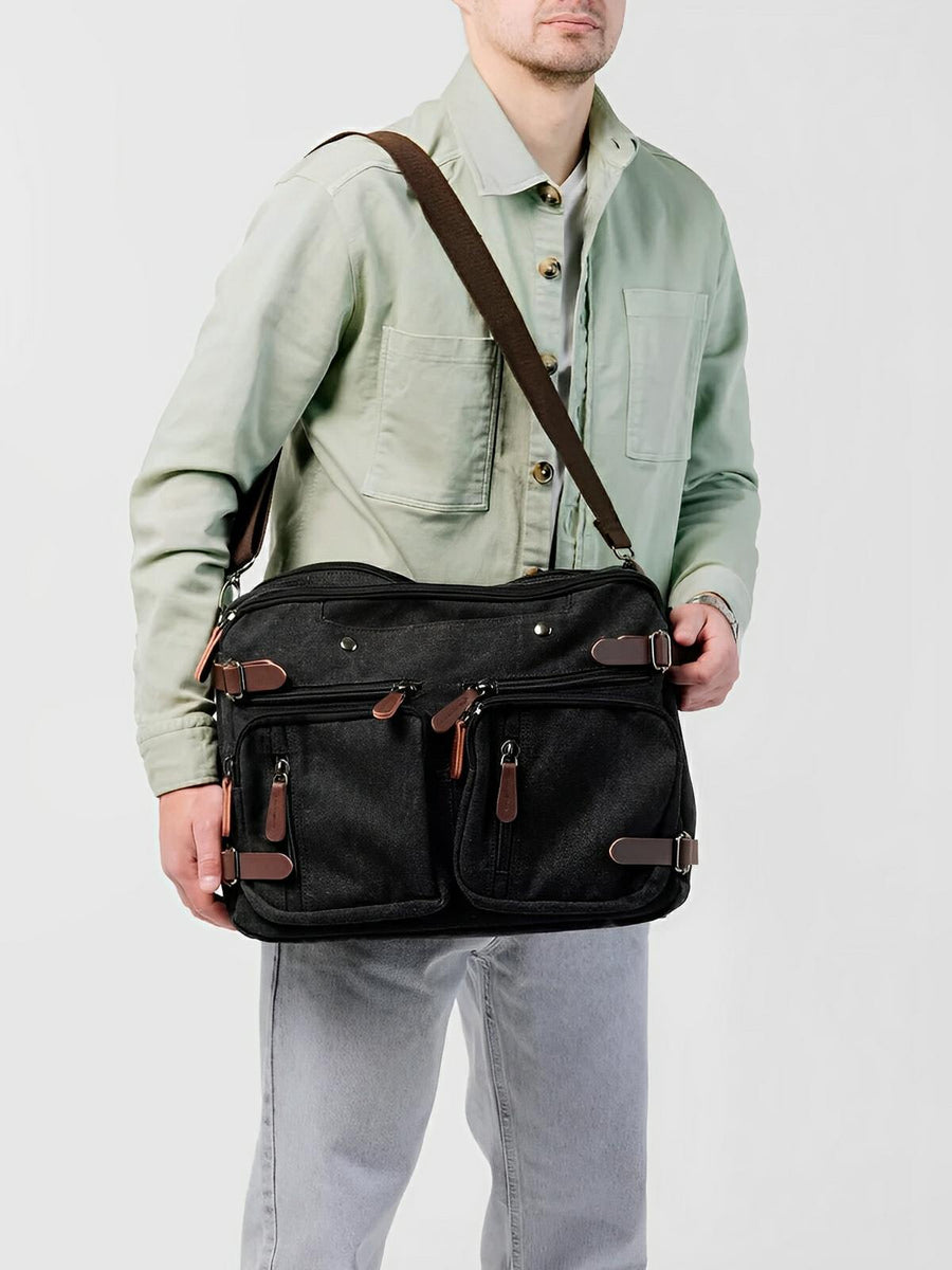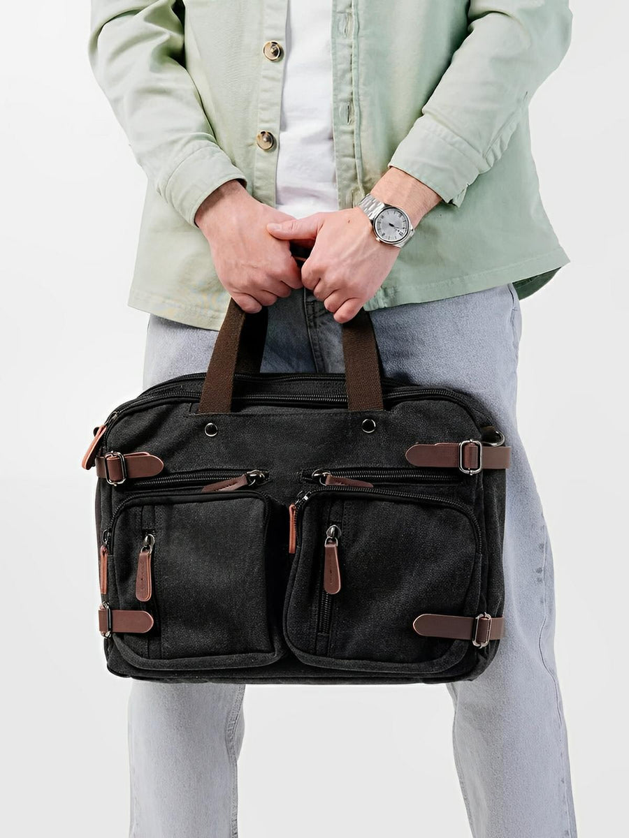 Borsa a tracolla convertibile in zaino, stile business in tela canvas, multi-tasche, modello Nolan