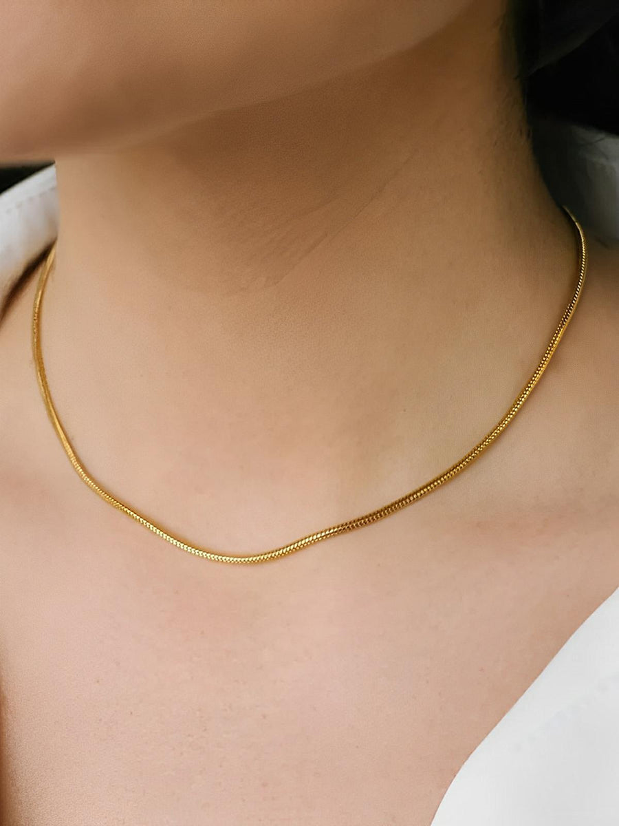 Collana lunga donna, acciaio inossidabile, placcata oro 18 carati, catena a serpente, stile minimalista, modello Odette