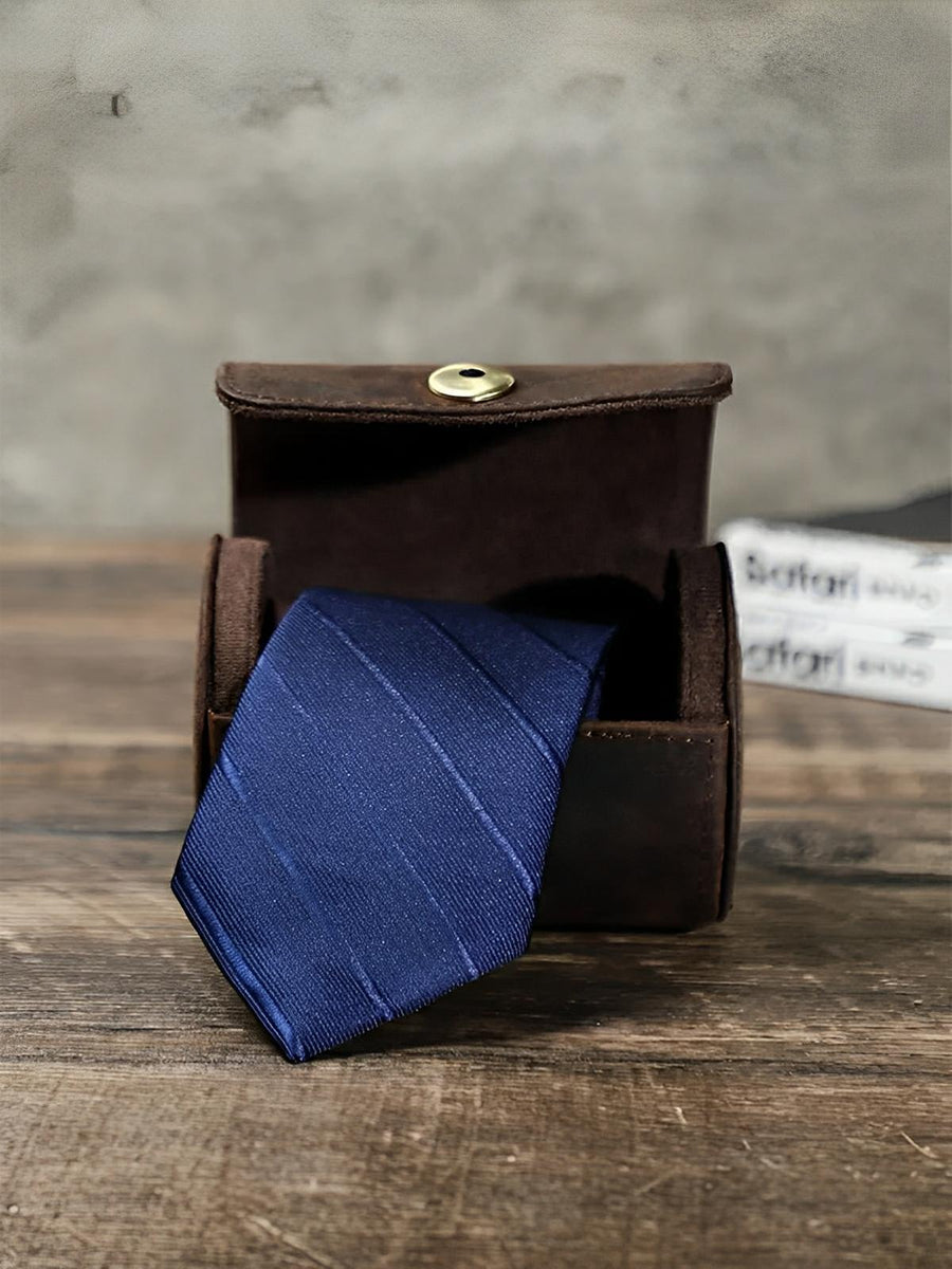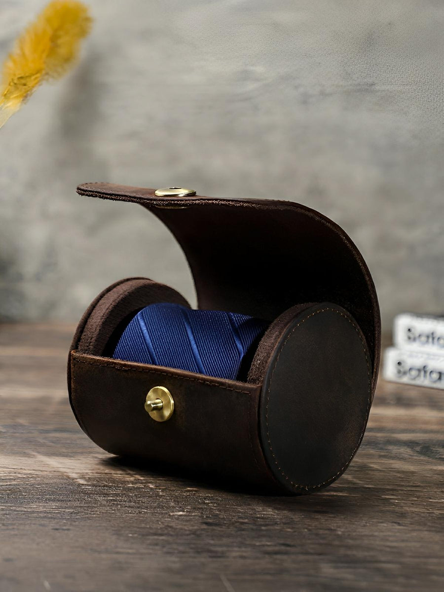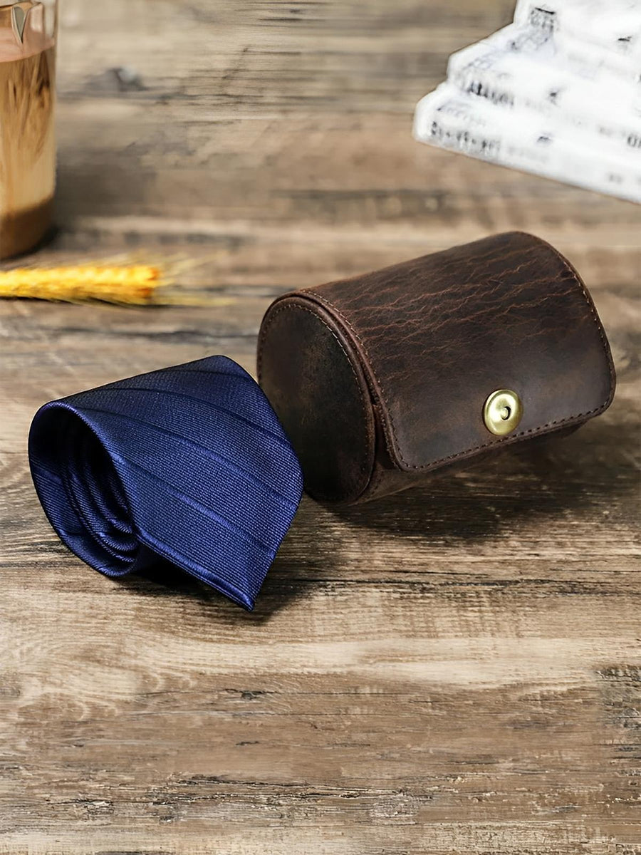 Offrite alla vostra cravatta una protezione elegante e raffinata con questo porta-cravatta in vera pelle. Progettato per gli appassionati di moda e i viaggiatori attenti ai dettagli, questo contenitore compatto consente di preservare la forma e la qualità della vostra cravatta, sia a casa che in viaggio.
