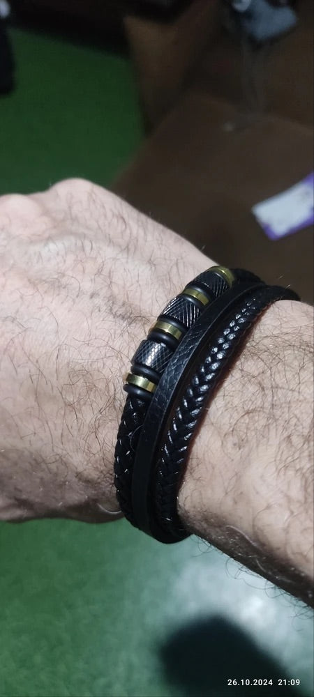 Questo bracciale in pelle intrecciata nera incarna la perfetta combinazione di modernità e carattere. Realizzato in vera pelle e acciaio titanio, offre uno stile audace e maschile, ideale per accompagnare un look sofisticato o casual.
