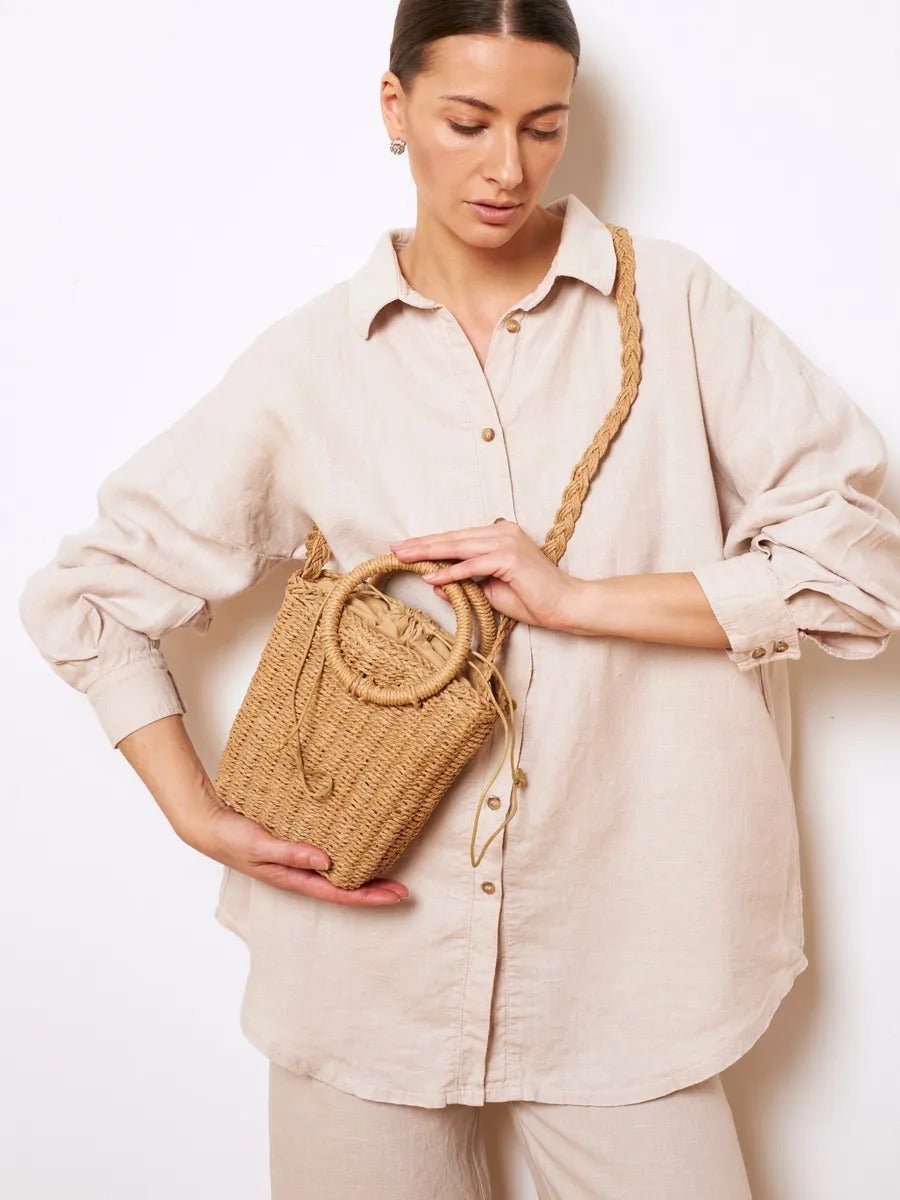 Ideale per le vostre giornate in spiaggia o passeggiate in città, è dotata di una tracolla lunga intrecciata per un comodo trasporto a spalla, oltre a una fodera in cotone integrata con un sistema di chiusura a coulisse che protegge efficacemente i vostri effetti personali.