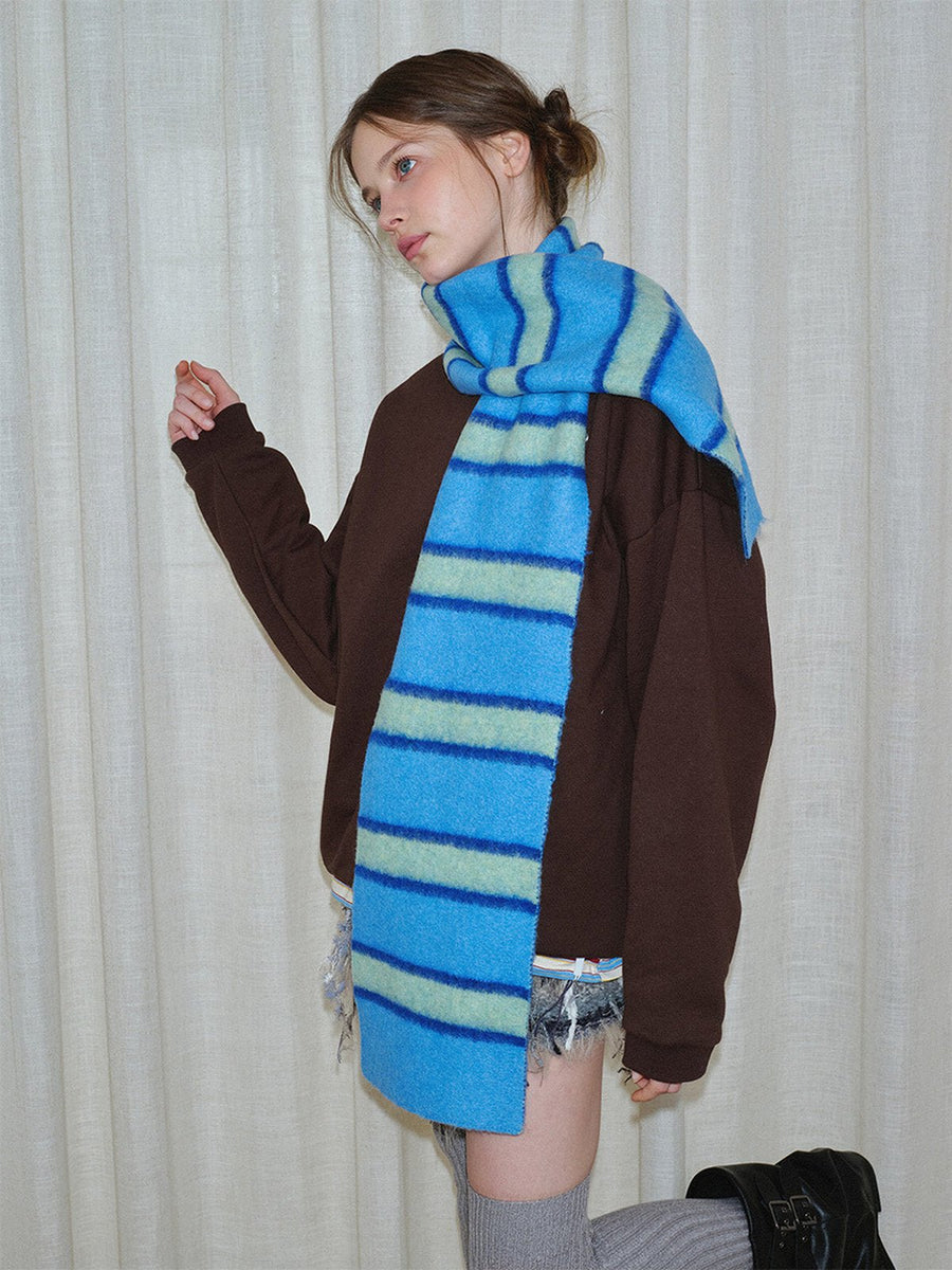 Offrite al vostro collo una sensazione di comfort irresistibile con questa sciarpa a righe dal design vivace e contemporaneo. Grazie alla sua texture leggermente pelosa e al formato generoso, vi avvolge nel calore aggiungendo un tocco di carattere ai vostri outfit invernali.