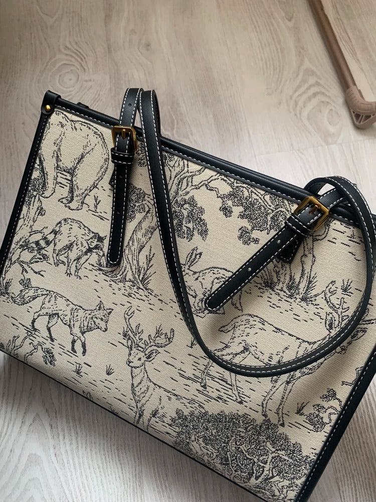 Borsa shopper donna, a spalla in tela, grande capacità, tote bag con motivo animale, per l’uso quotidiano chic, modello Prisca