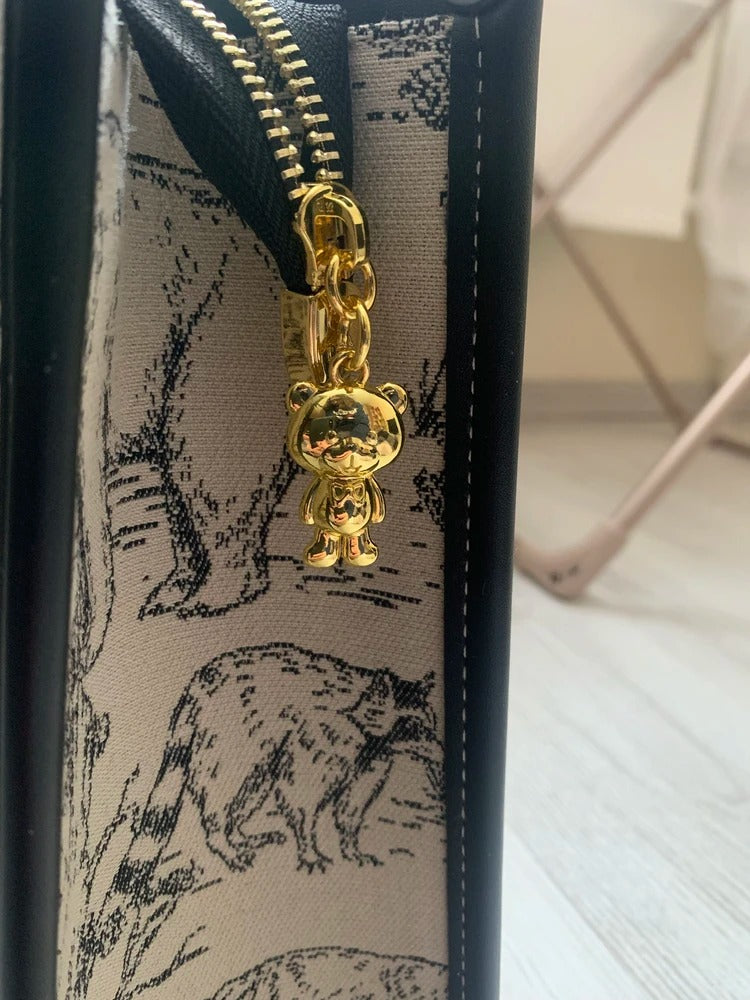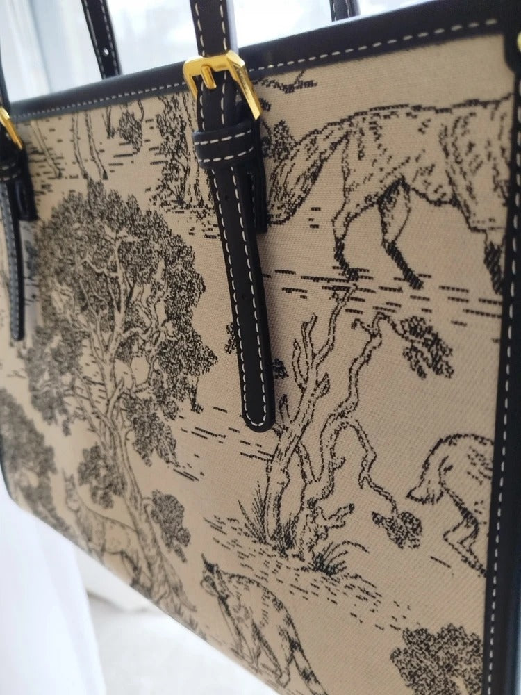 Affermate il vostro stile con questa shopper in tela a stampa animalier, pensata per le giornate dinamiche. Questo modello spazioso unisce design grafico e praticità urbana, perfetto per accompagnare i vostri spostamenti quotidiani.