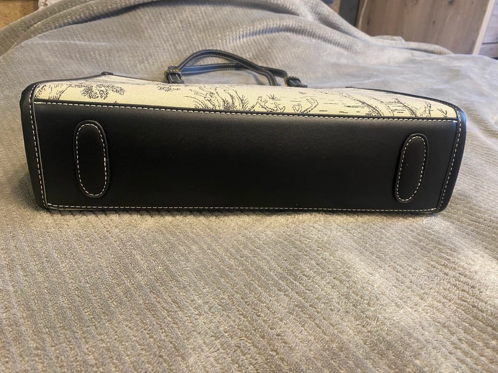 Realizzata in tela testurizzata e decorata con motivi originali, questa borsa a spalla diventerà la vostra alleata quotidiana, sia per l’ufficio, lo studio o le uscite in città.