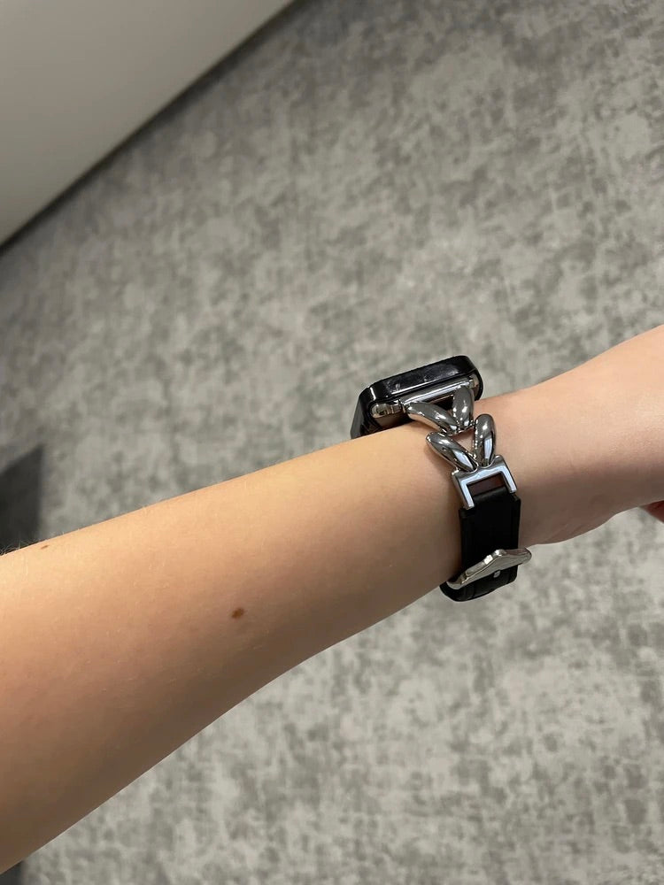 Compatibile con diverse dimensioni di cassa Apple Watch, si distingue per le sue finiture curate e il suo stile contemporaneo.