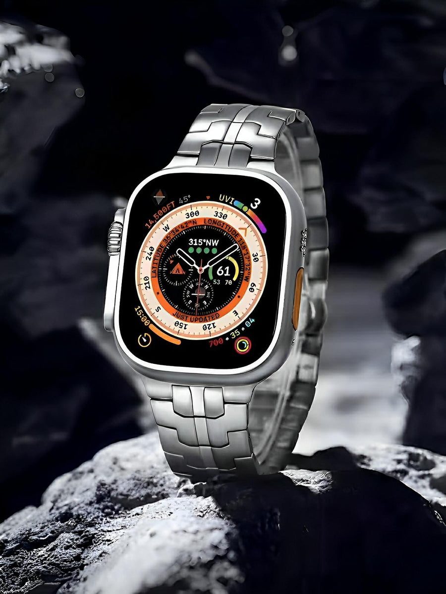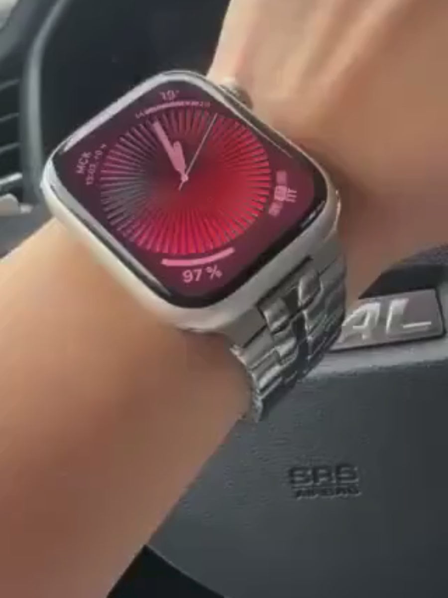 Bracciale in titanio per Apple Watch, design scolpito, regolabile e ultra-resistente, chiusura a farfalla sicura, modello Réno