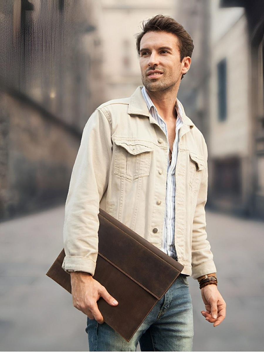 Offrite al vostro MacBook Air 15 pollici una protezione elegante con questa custodia in vera pelle. Il suo design sottile e sofisticato si adatta perfettamente al vostro computer, offrendo al contempo una protezione contro i graffi e gli urti leggeri.