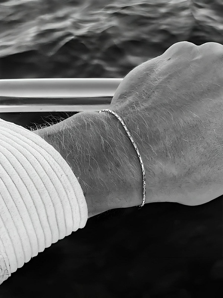 Questo bracciale da uomo in acciaio inossidabile 316L incarna un’estetica al tempo stesso discreta e decisa. Progettato per durare, non si scurisce e mantiene la sua brillantezza nel tempo.