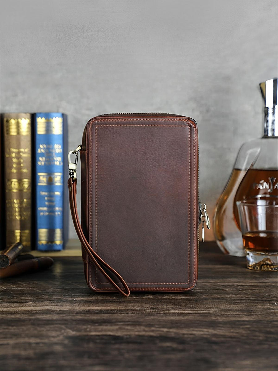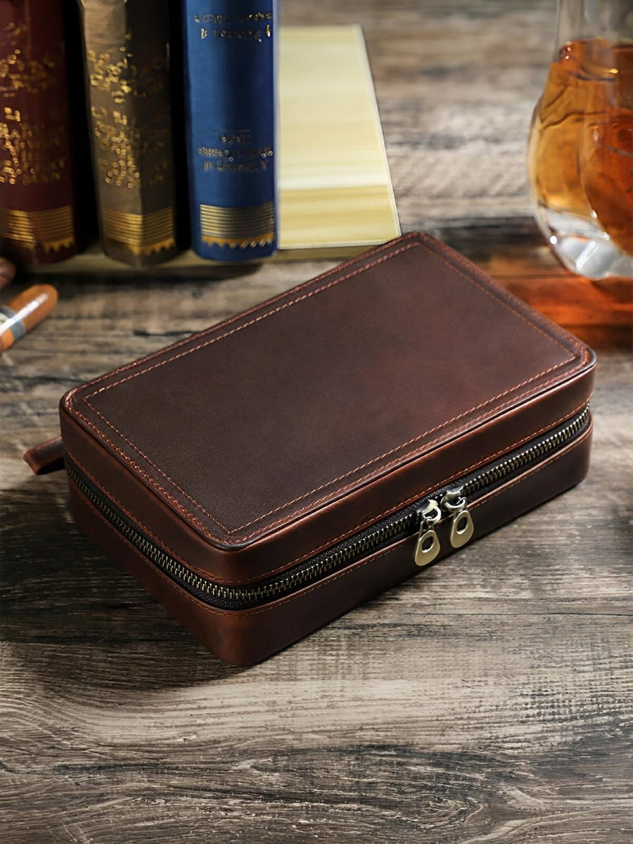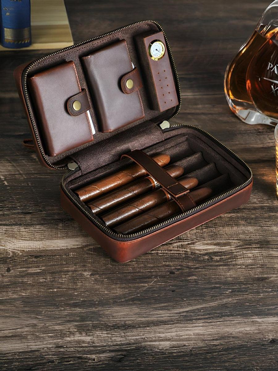 Scoprite un astuccio sofisticato, progettato per preservare e trasportare i vostri sigari con stile e praticità. Questo cofanetto portasigari in pelle unisce eleganza e funzionalità, offrendo una protezione ottimale per i vostri preziosi moduli.