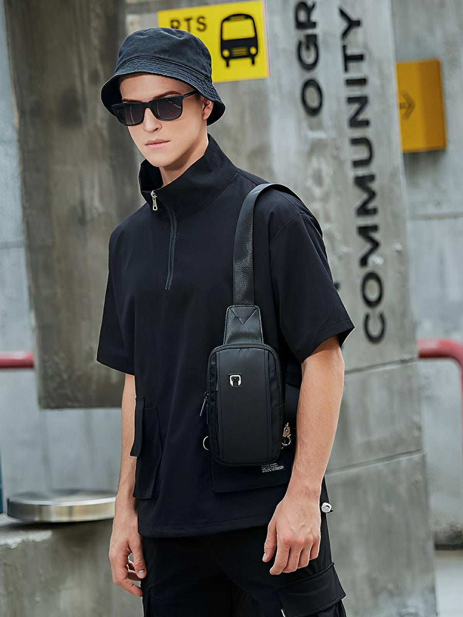 Borsa a tracolla da uomo, borsa compatta da petto, con tracolla regolabile, leggera e urbana, modello Ruben
