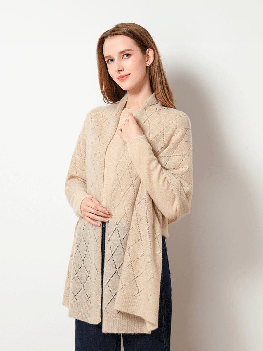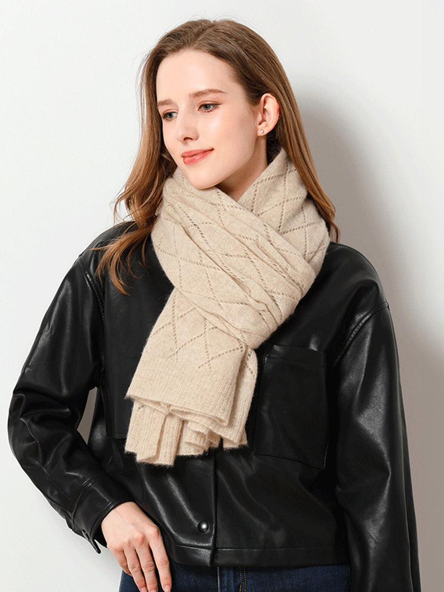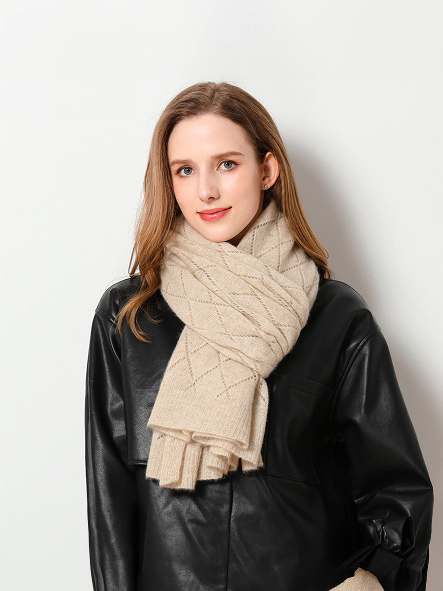Sciarpa da donna in puro cashmere, maglia traspirante, grande sciarpa traforata, morbida e calda, accessorio invernale chic, modello Sandy