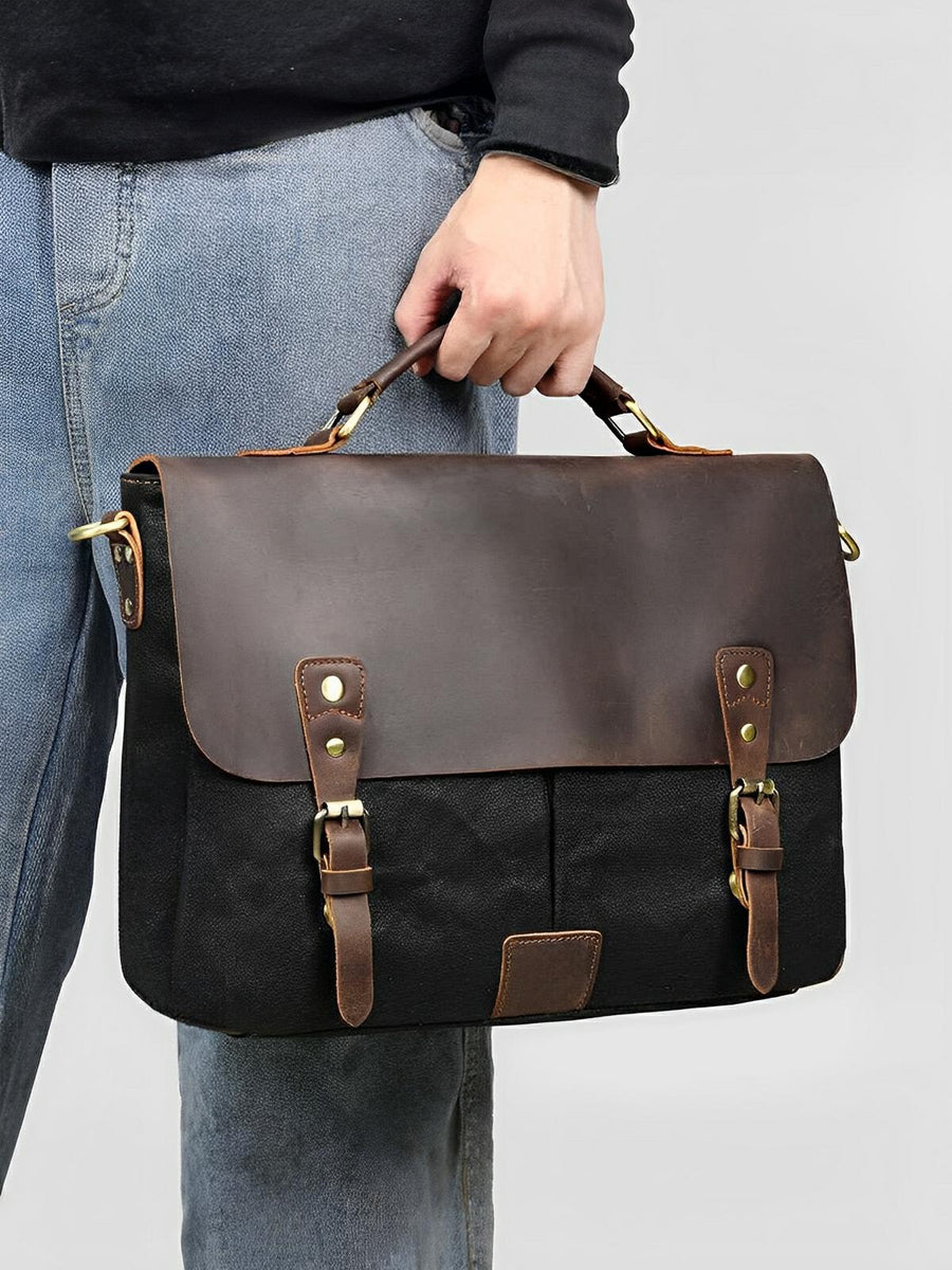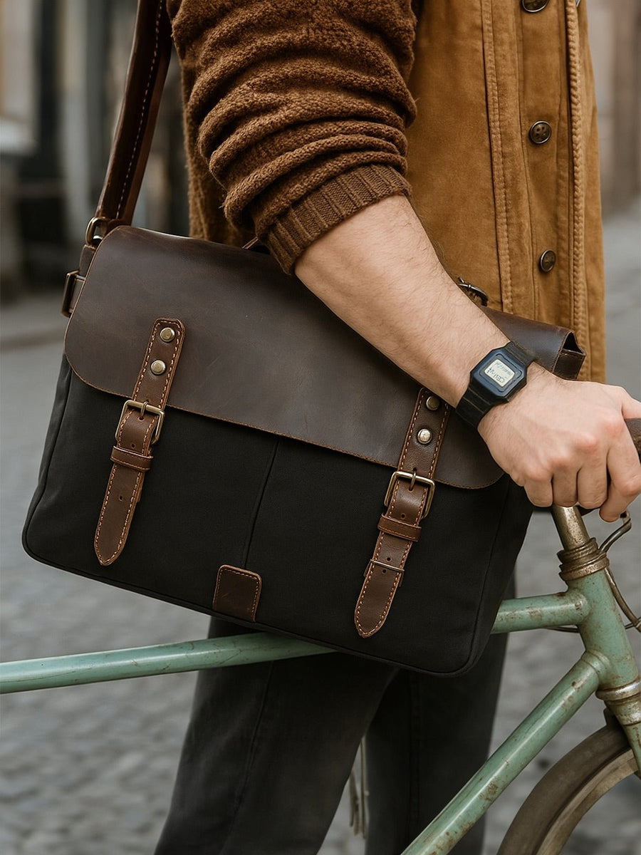 Scoprite questa borsa in tela cerata resistente e in pelle, pensata per uomini moderni alla ricerca di un accessorio pratico e dallo stile rétro inimitabile. Ideale per i vostri spostamenti professionali o per i viaggi, questa borsa unisce eleganza e funzionalità.